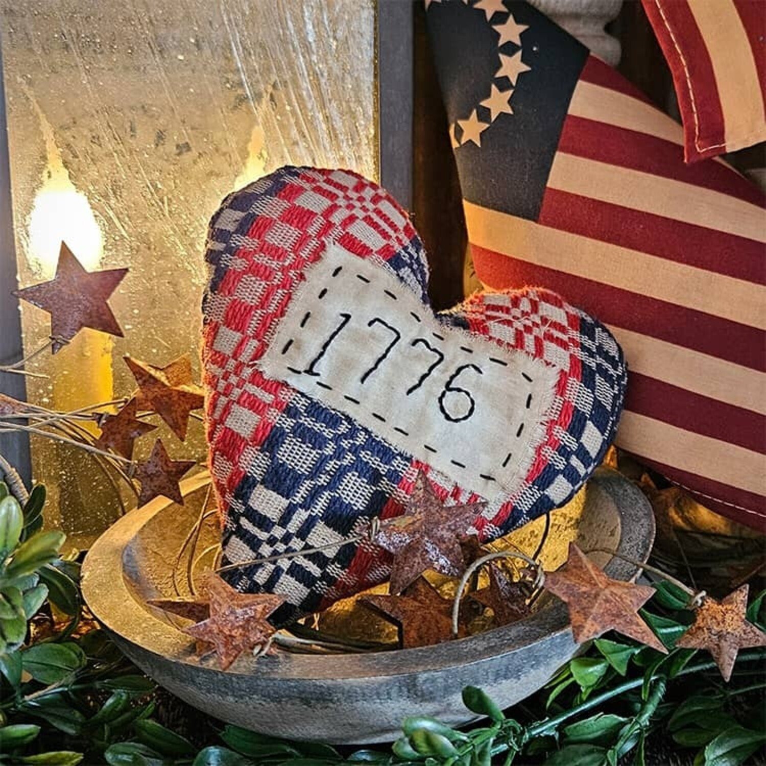 Add a touch of whimsy to your Patriotic colors! It's America's 250th birthday and Linda has captured the spirit of 1776 with this small, muslin, heart. Handmade in the USA.