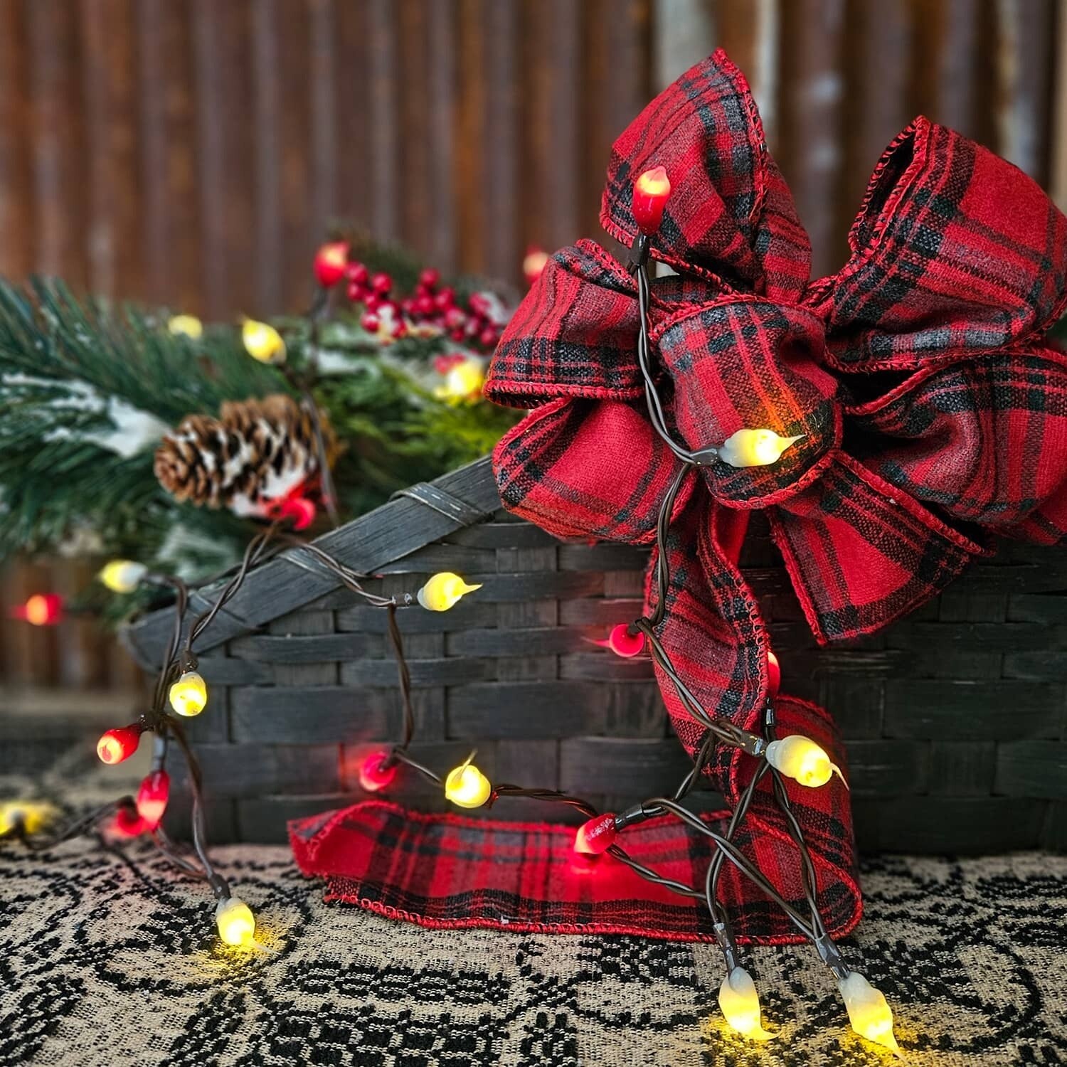 Add the festive bulbs of the Country Cane Teeny Bulbs. Great with a Christmas display or greenery. 6 hour timer turns them on when you desire. Brown cord features a plug on one end.