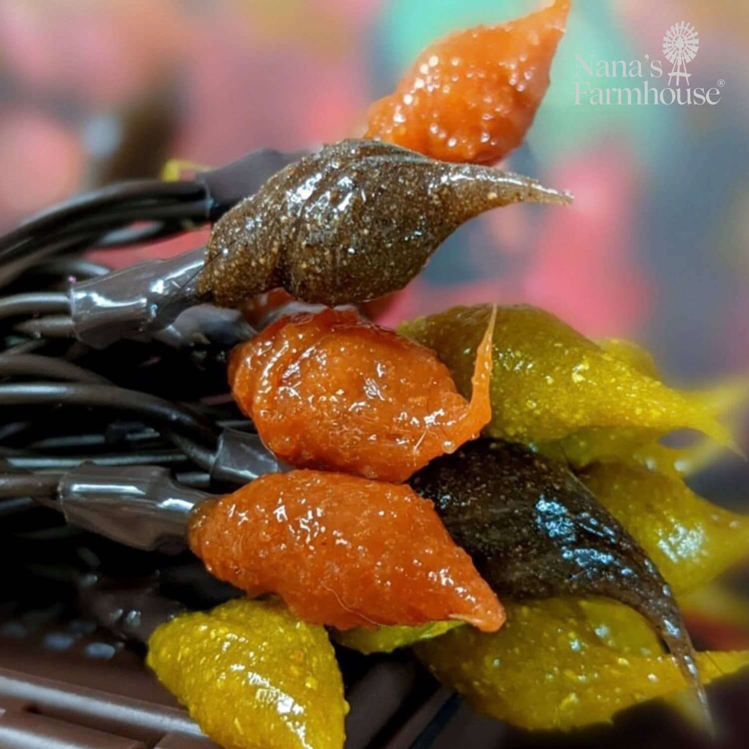 Teeny String Light, also known as Rice Lights, in this great color, Fall Leaves. Each individually handcrafted. Perfect for accenting a favorite collection, greenery or a centerpiece. Indoor use only. Battery operated with 6 hour timer.