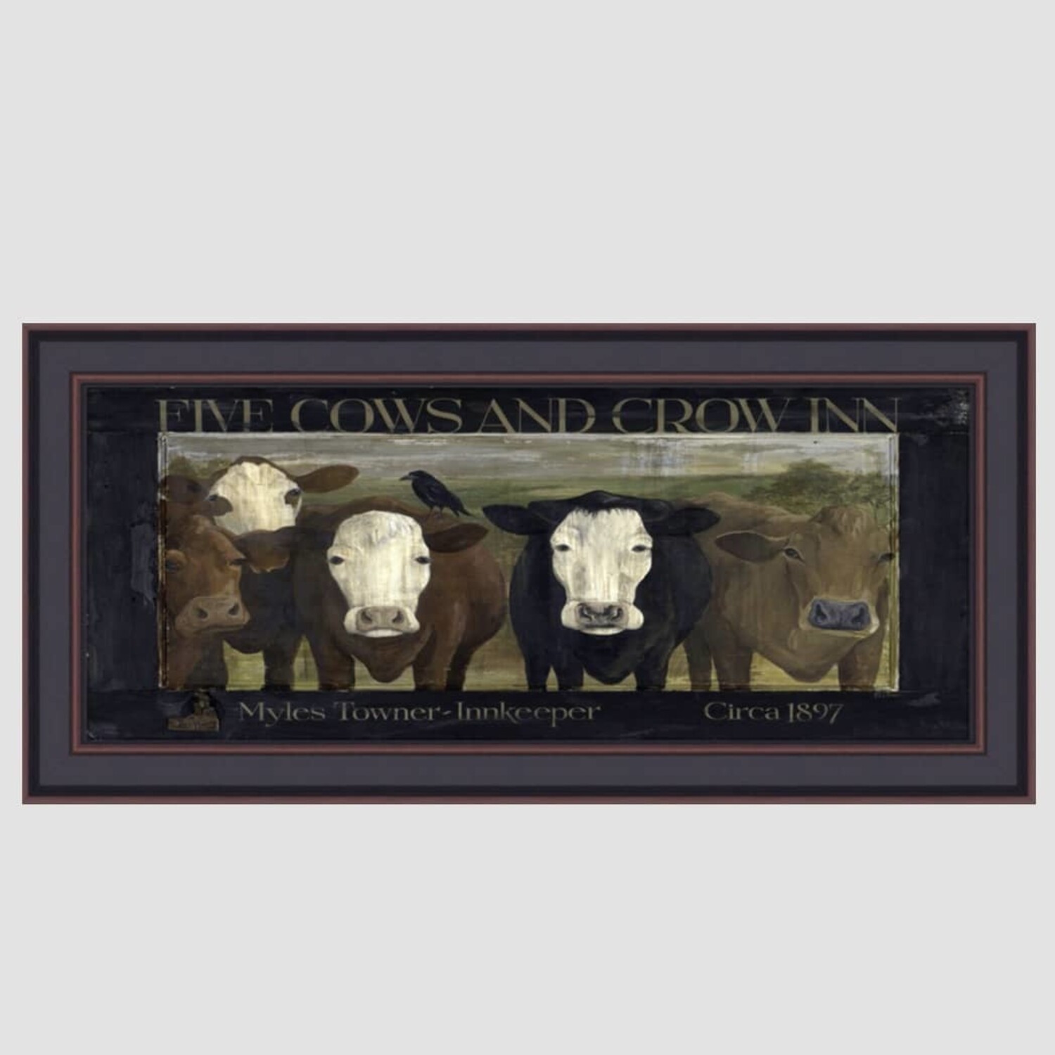 The whimsical Five Cows Print captures the 5 Cows and Crow Inn. You'll love the rich colors and 1897 design. Created by artist Terri Palmer. Made in the USA!
