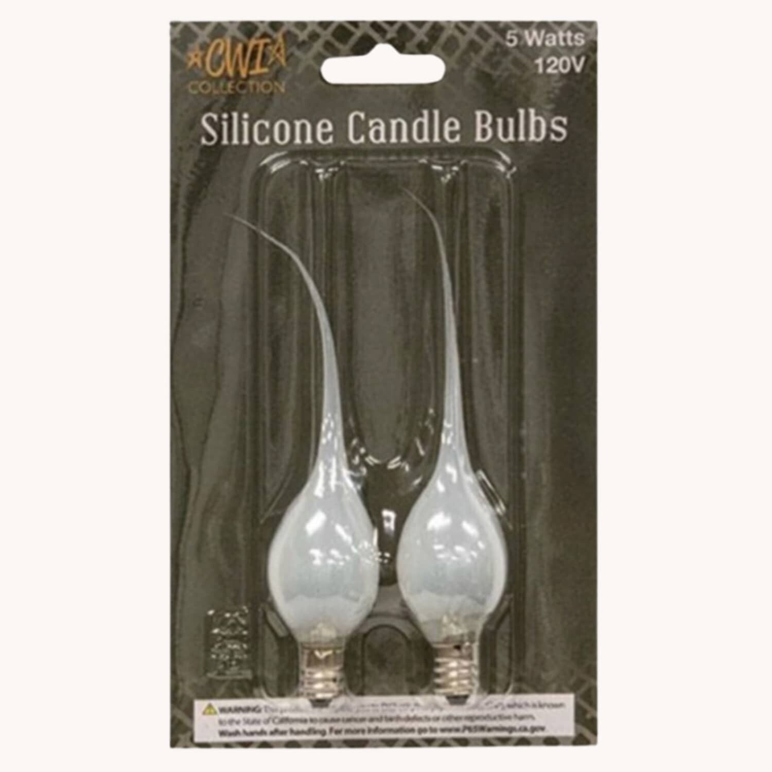 Add country style with the clear Silicone Light Bulbs. You'll receive two bulbs to use in your candle sleeve. Bulbs are 2-1/4" long and have a candelabra base. These are non-flickering bulbs and for use with electric candles.