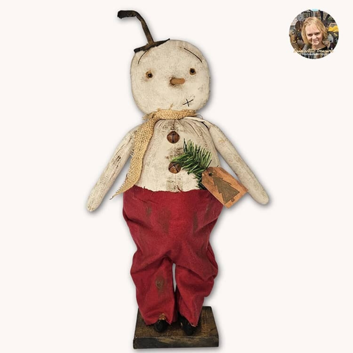Primitive Doll for the Christmas season. Stands on wooden base. Handmade in the USA.