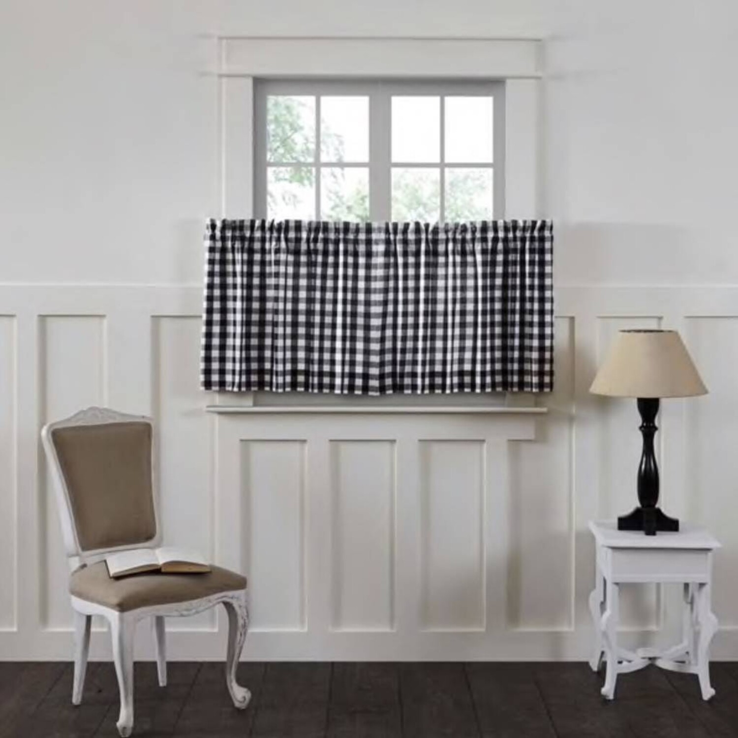 Availability: In Stock$27.95Add a finishing touch to your farmhouse with the classic look of the Buffalo Black Check Prairie Swag. Sold in a set of 2 this curtain adds a flare of rural sophistication to any room with its large scale black & white checks. Includes drawstring ties.Annie Buffalo Black Check Lined Short Panel