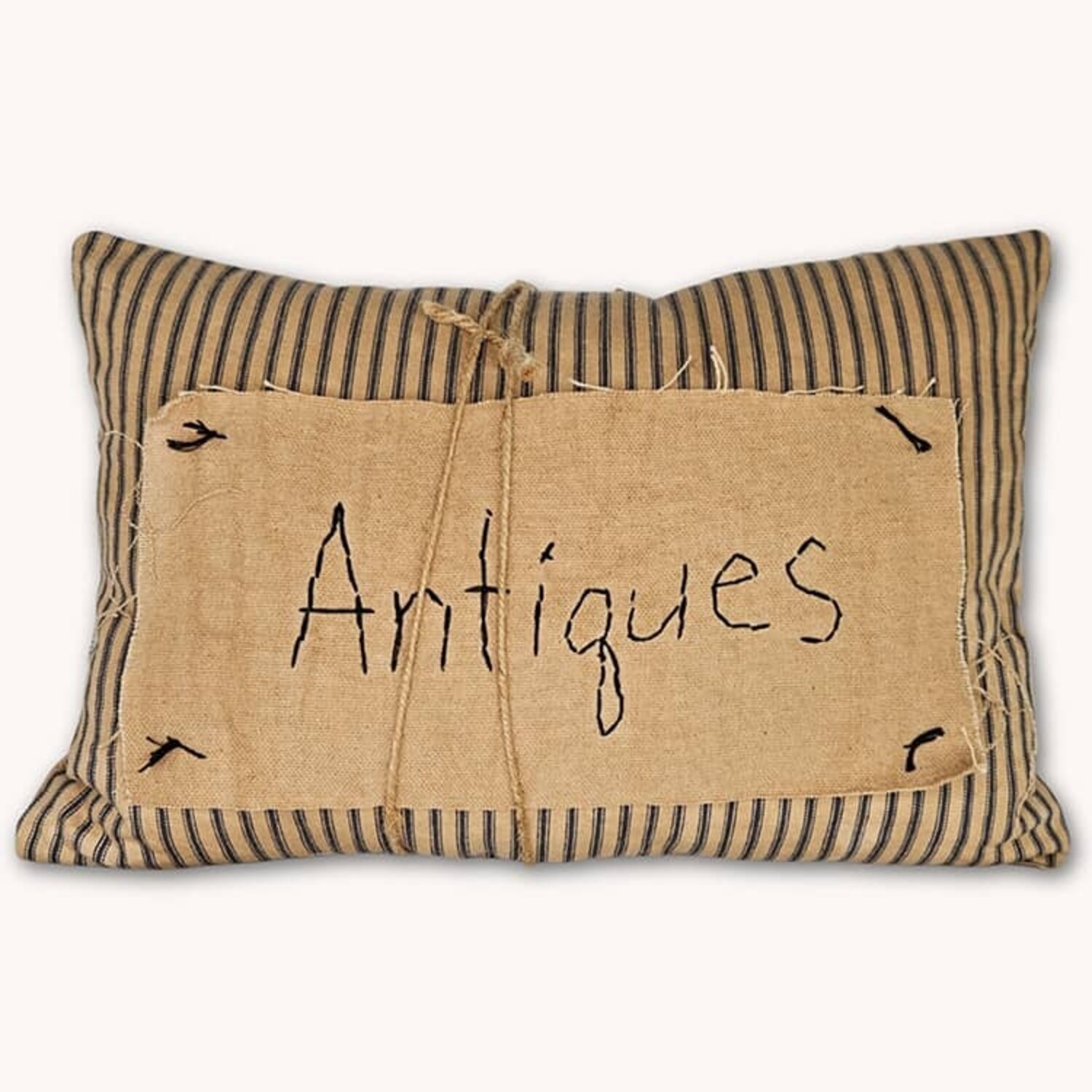 This handcrafted pillow with the word "Antique" across the front gives a warm, vintage inspired look. Perfect for adding charm to entryways, living rooms or bedrooms.