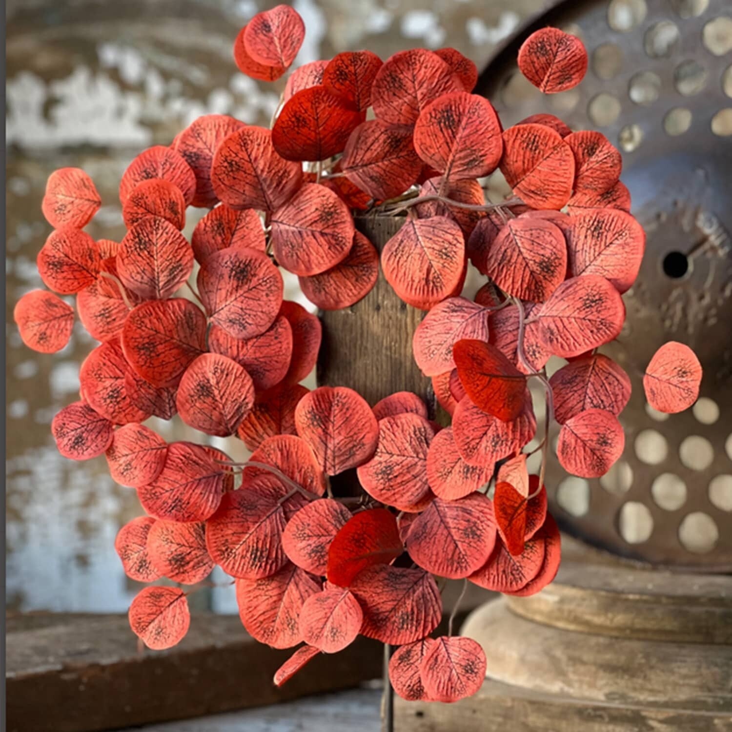 These auburn eucalyptus leaves are the ideal transitional floral to add to your collection. Warm tones and interesting rippled texture make interesting viewing and provide an excellent backdrop for your favorite pillar candle. In stock and ready to ship.