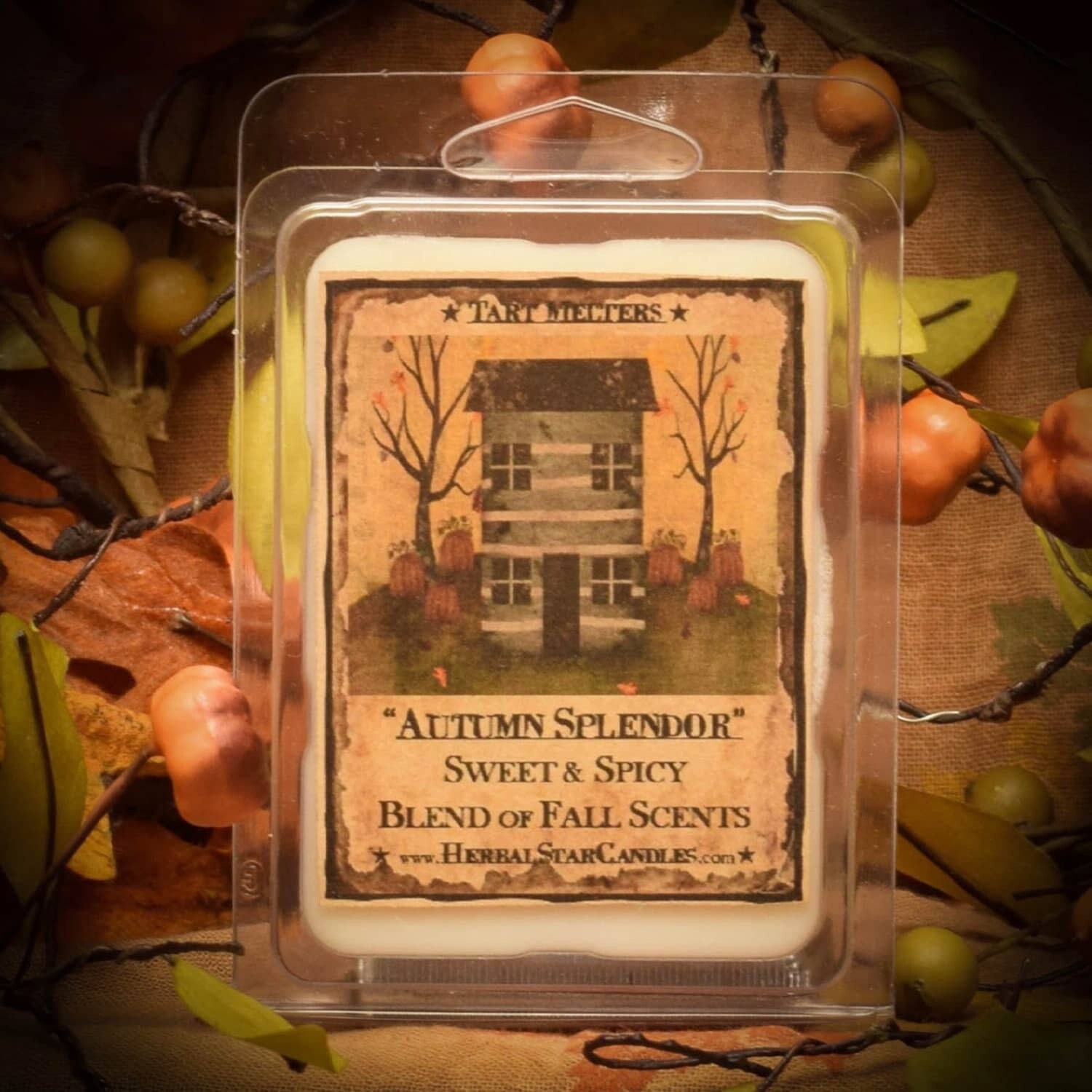 The blend of pumpkin, maple, caramel and orange when added with a good dose of spice creates the seasonal favorite of Autumn Splendor. A sweet and spicy scents scent created for your home as the days get shorter and trees turn rich colors.