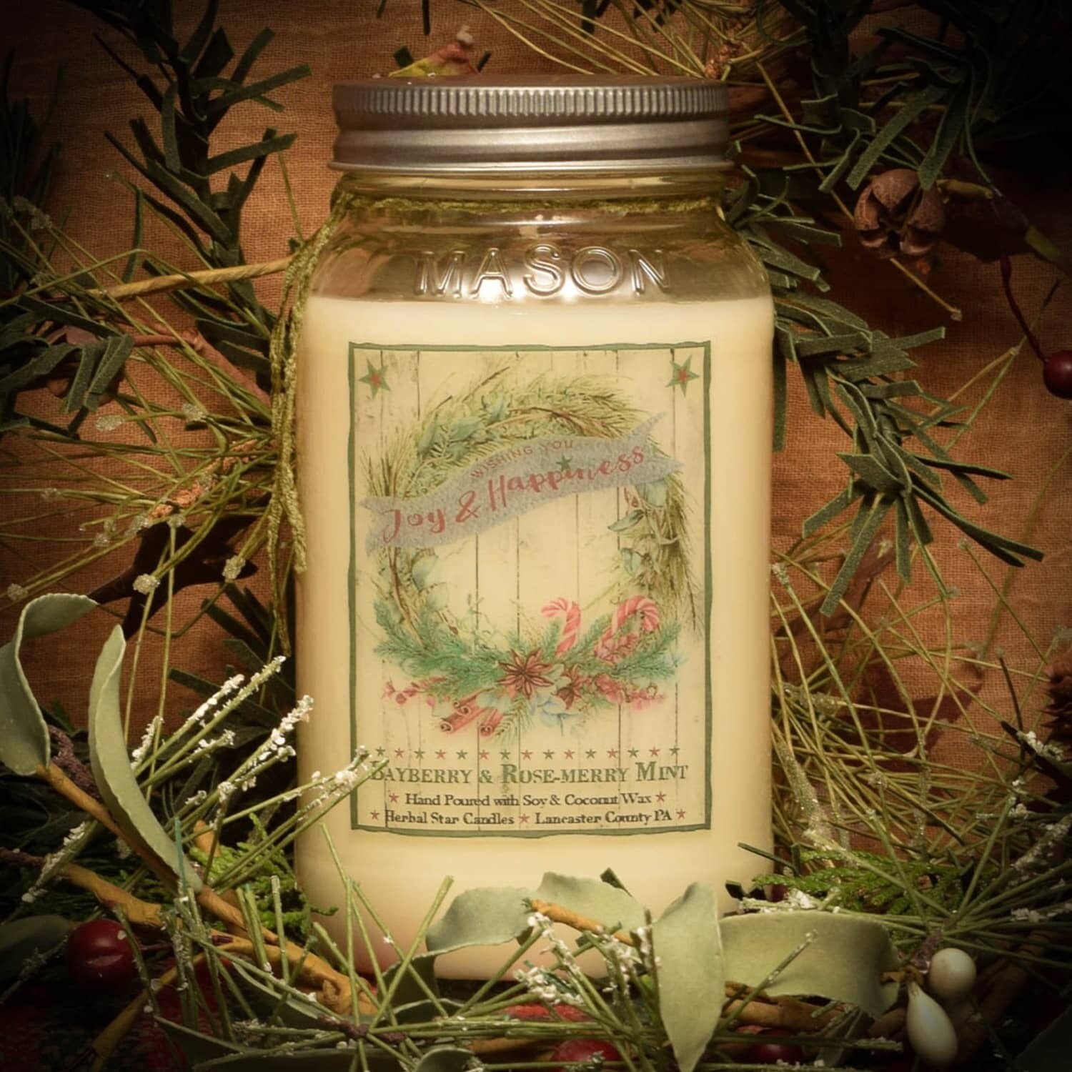 Bayberry and Rose-Merry Mint is a new scent-think of the Rosemary Mint and add that woodsy touch of Bayberry and we have come up with a wonderful & clean herbal holiday scent.
