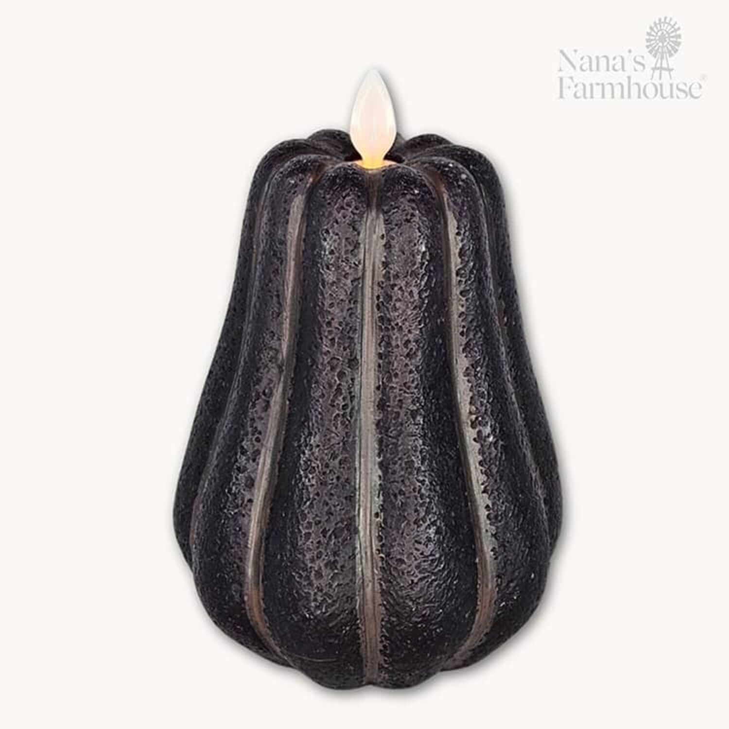 Black Pumpkin Moving Flame LED Candle - 4.7" x. 3.8"
