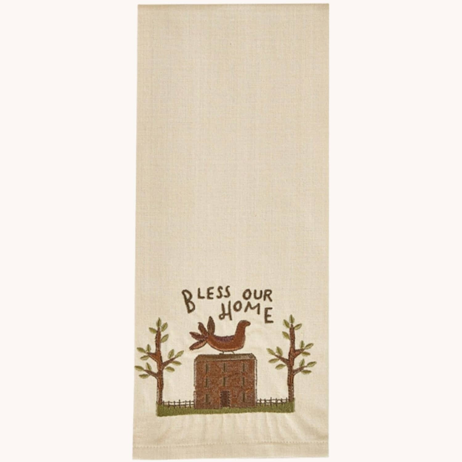 Simple Bless Our Home Design is a timeless addition to your home that can be used year round. Created with a Salt Box House, Bird and Trees.