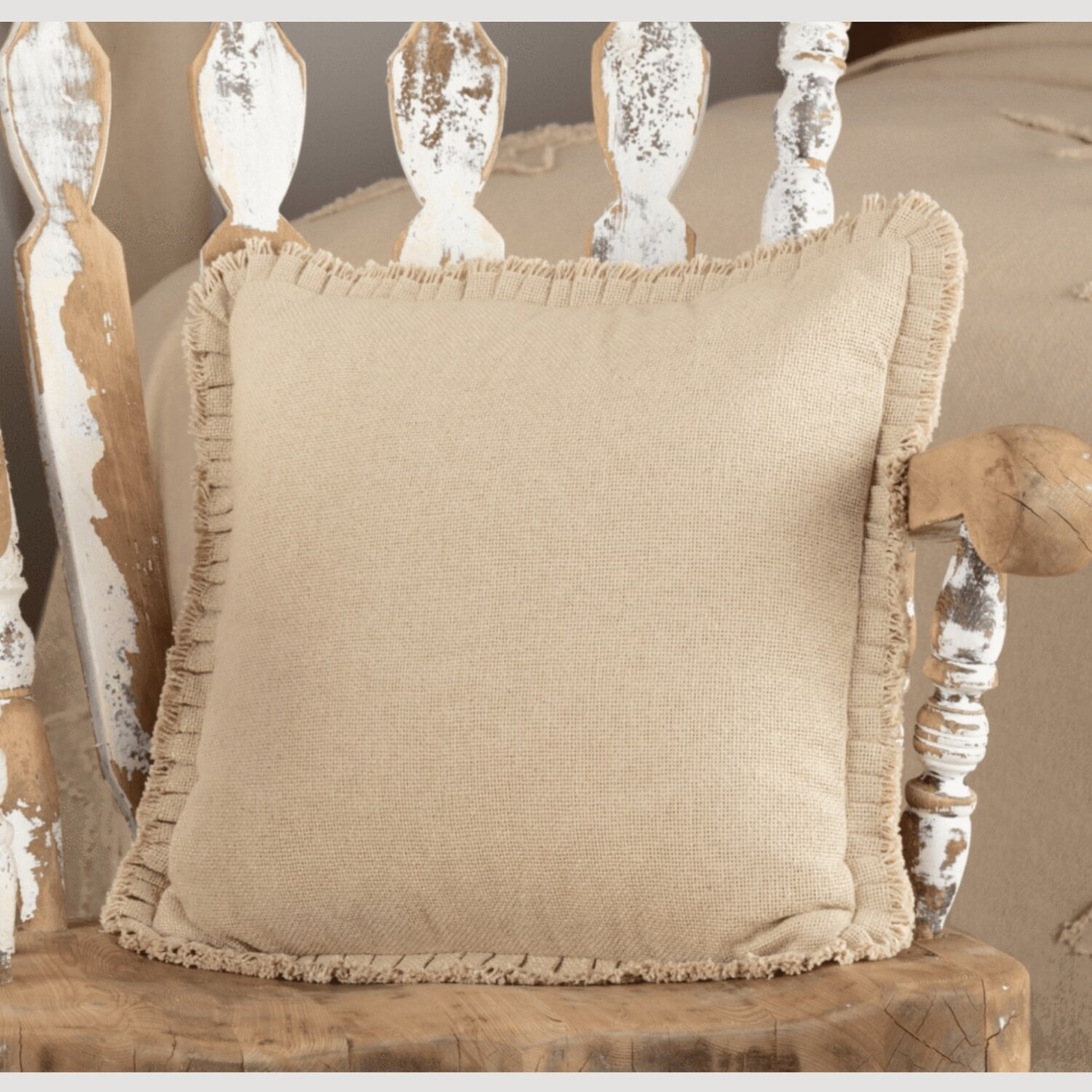 Burlap Vintage Pillow w/ Fringed Ruffle