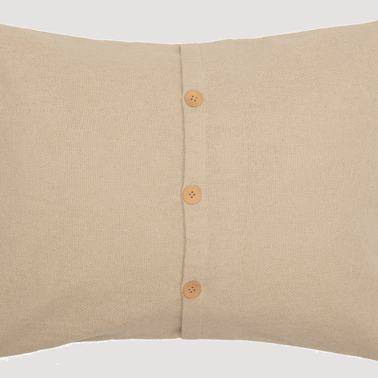 Add the simple, rustic, farmhouse Burlap Vintage Sham. This country style sham features soft vintage cotton burlap & a turned edge seam for a quality finish. Reverses to a soft vintage burlap with light wooden button closures to complete the look.