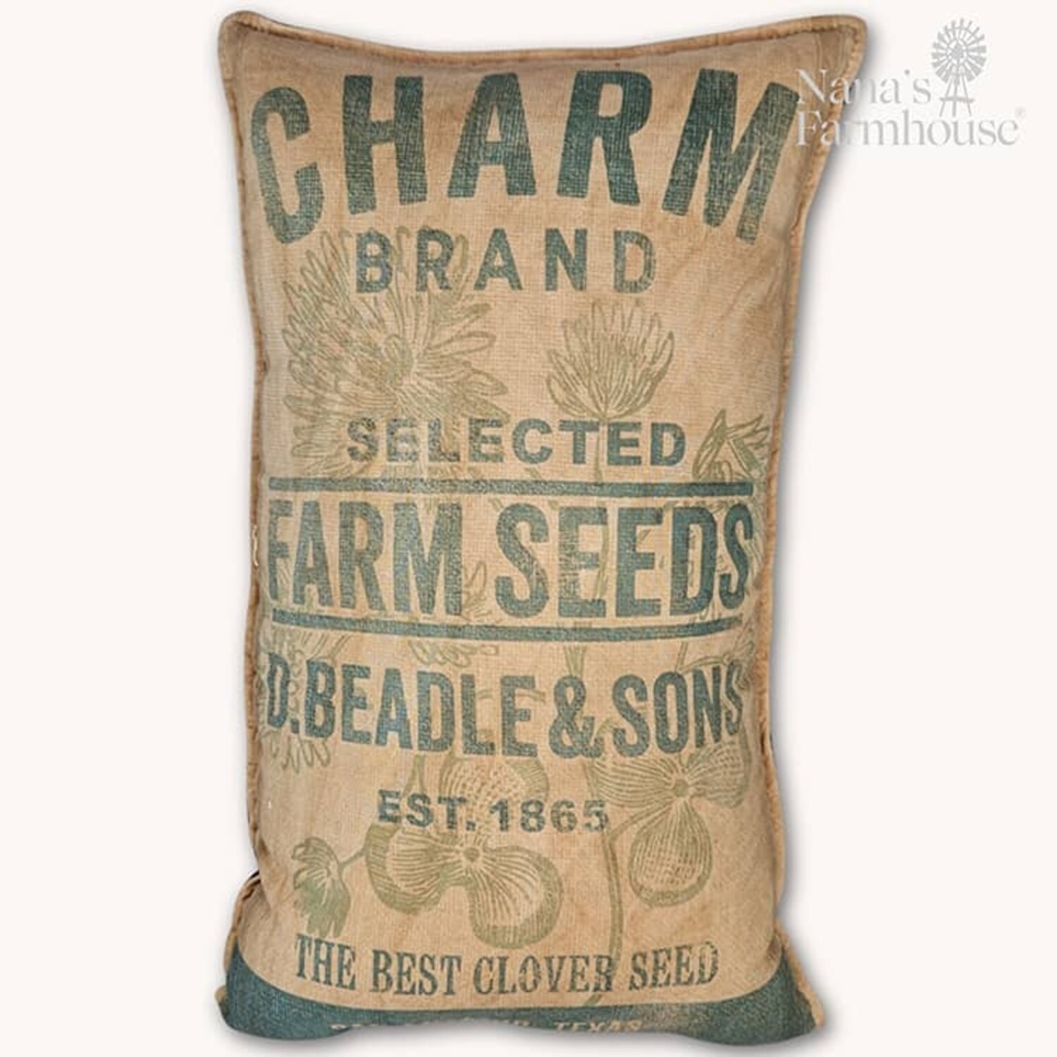 Features of the Charm Brand Farm Seeds Feed Sack Pillow: