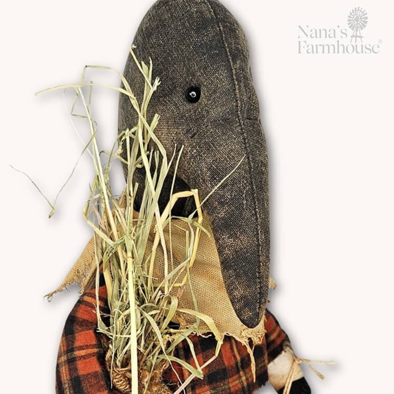 Chester Crow Doll Orange Plaid Shirt with Long Bag Of Grass - 16.5"