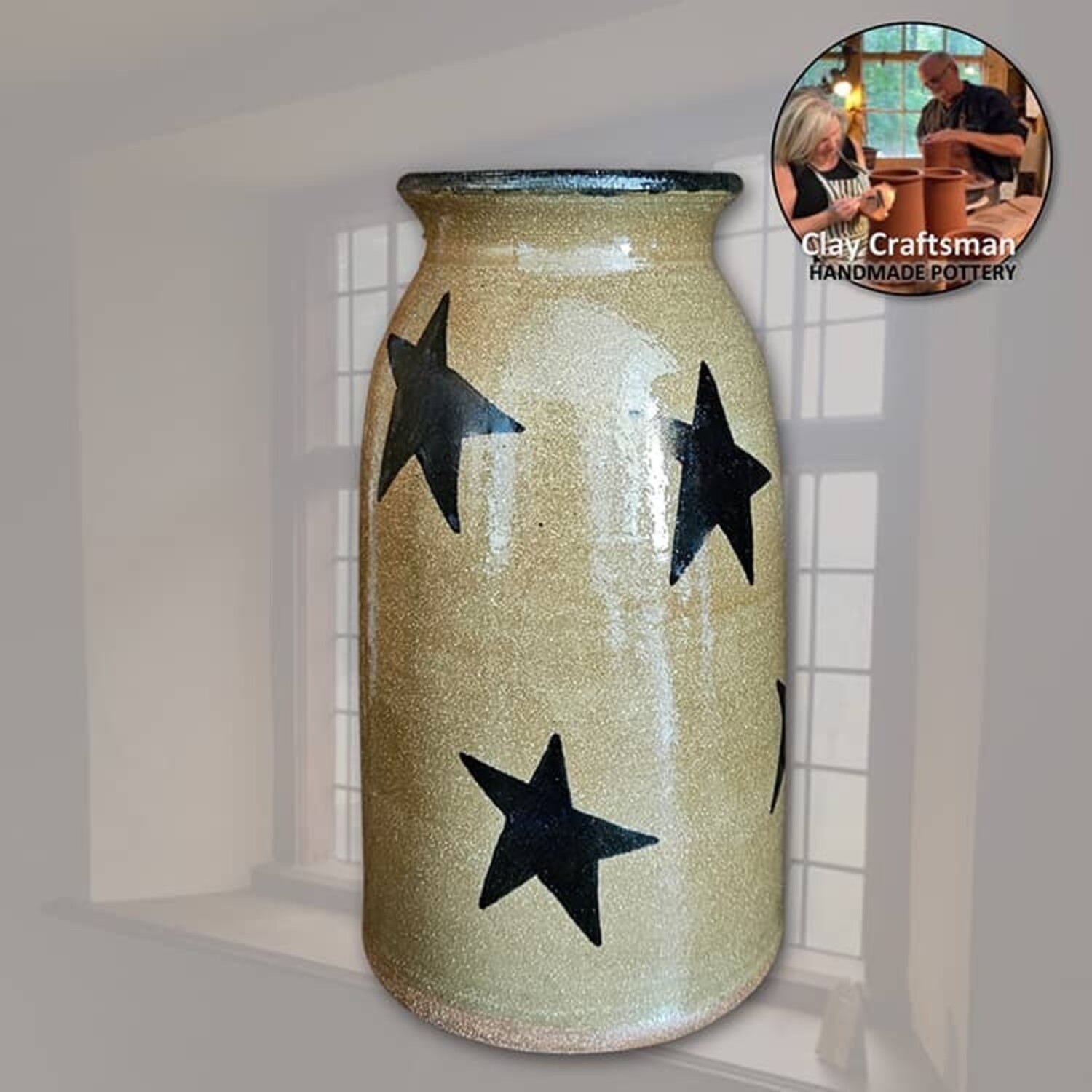 Features of the Stars Brown Clay Pottery Canning Crock: