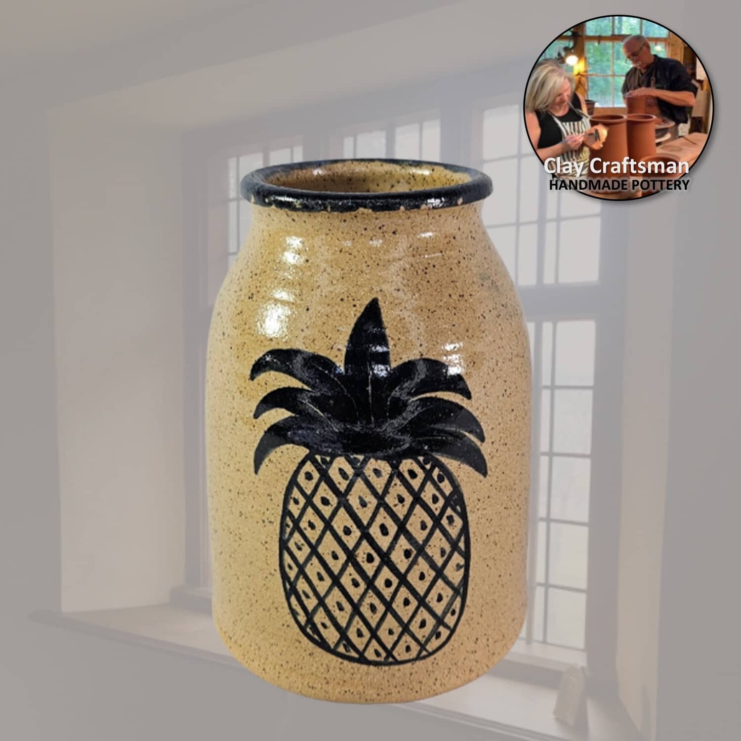 Features of the Clay Pottery Canning Crock W/Pineapple: