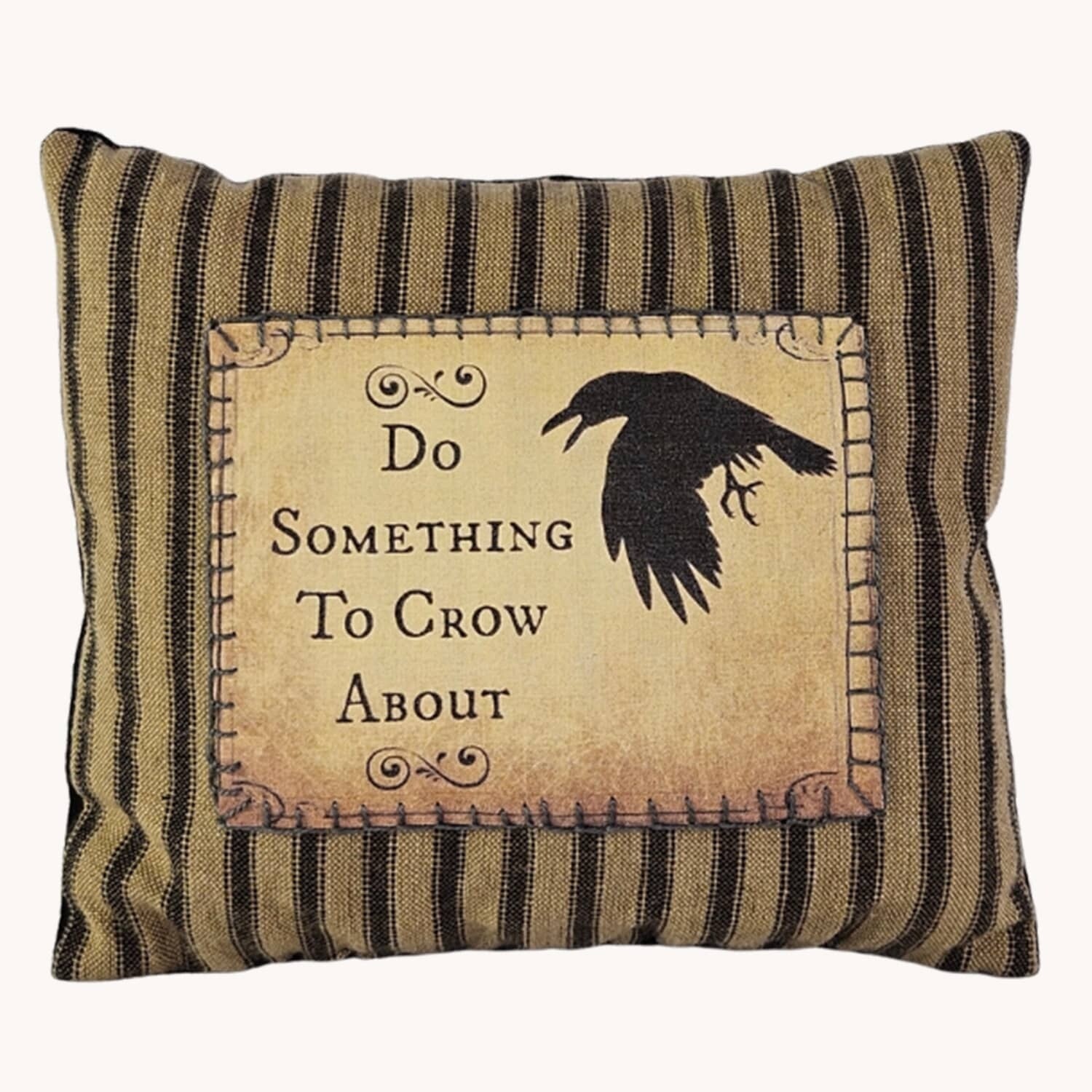 Features of the Do Something to Crow About Bowl Filler Pillow Black/Tan Ticking: