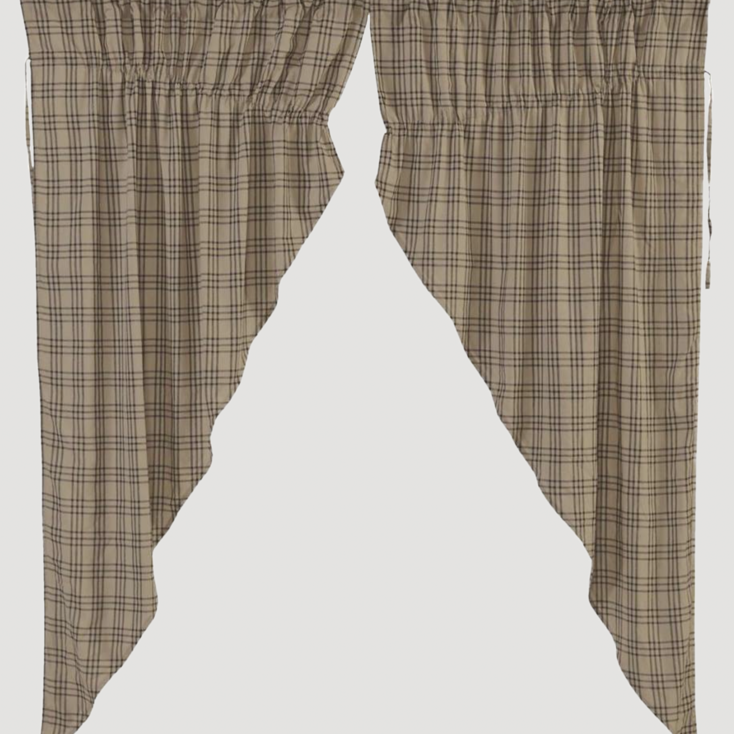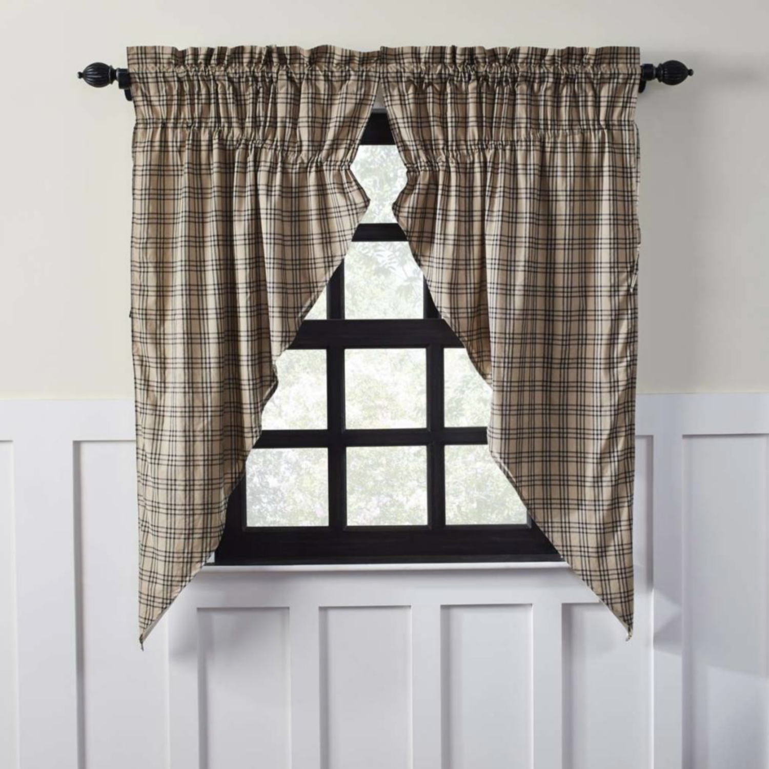Put a finishing touch of Farmhouse style by adding the Sawyer Mill Prairie Curtain Set to your window . The base is a dark tan under a tasteful large-scale black plaid. It's a perfect and classic addition to your home.