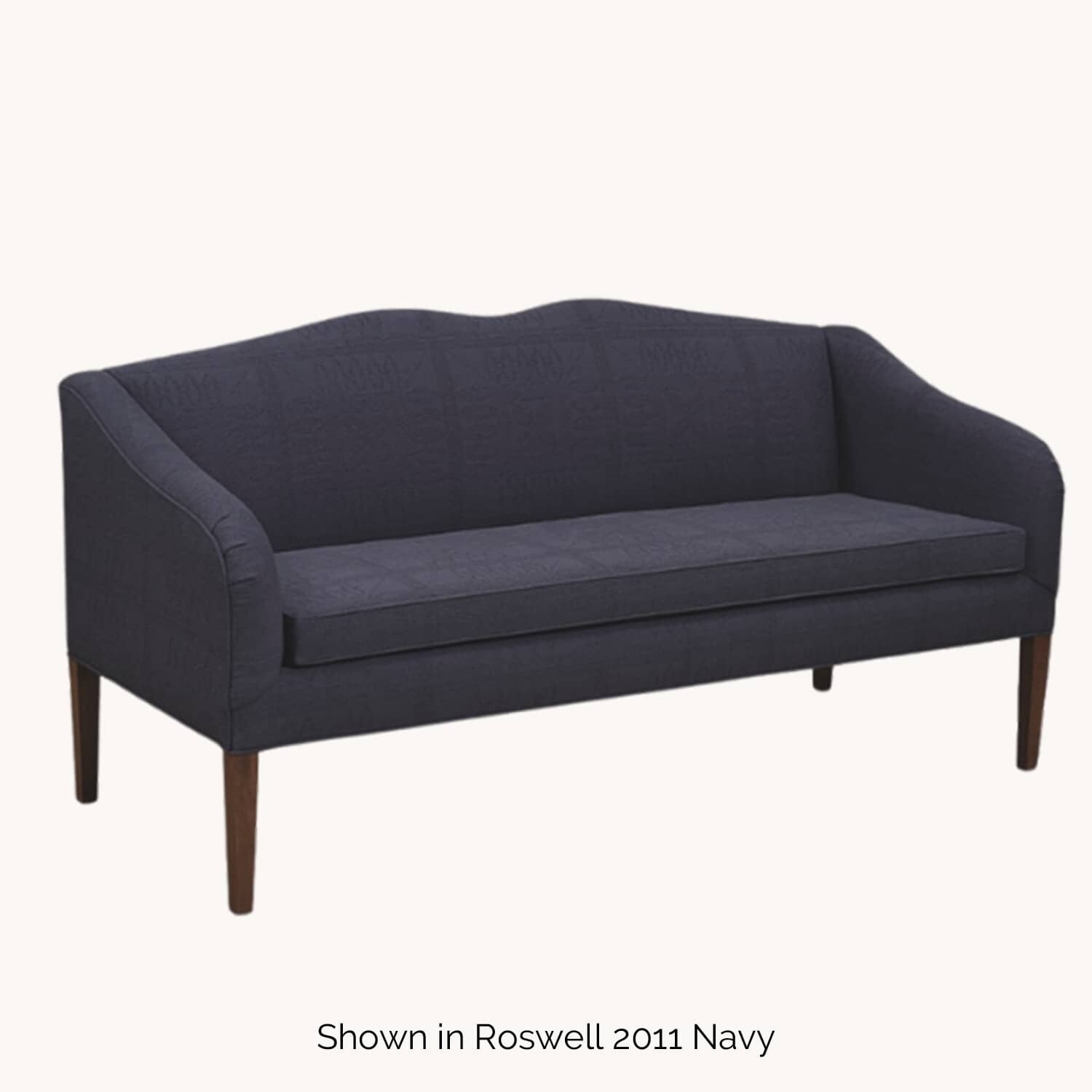 Availability: In Stock$2,278.00The Shelbourne Sofa has a true Early American style with the comfort of today for your home. Measures 78". From Town & Country's American Primitive Collection. Pick your favorite fabric. Shown in Antique Star 2044 Black Ecru fabric & Black wood. - $2,422.00