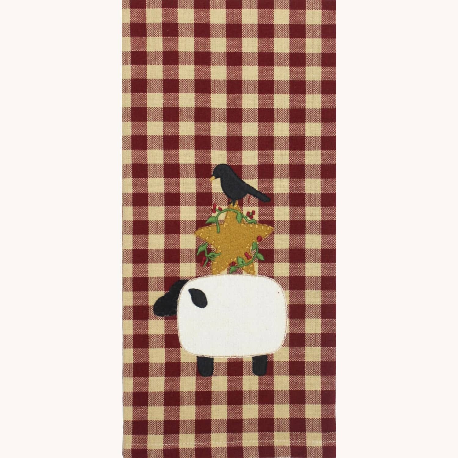 Add a touch of country with this barn red checked towel. This whimsical Stack Crow Star & Sheep Dishtowel is 100% made of cotton. Measures 18" x 28"