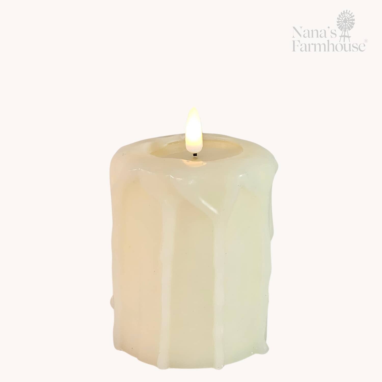 Cream 3D Flame Pillar Candle - 4" x 3.25"