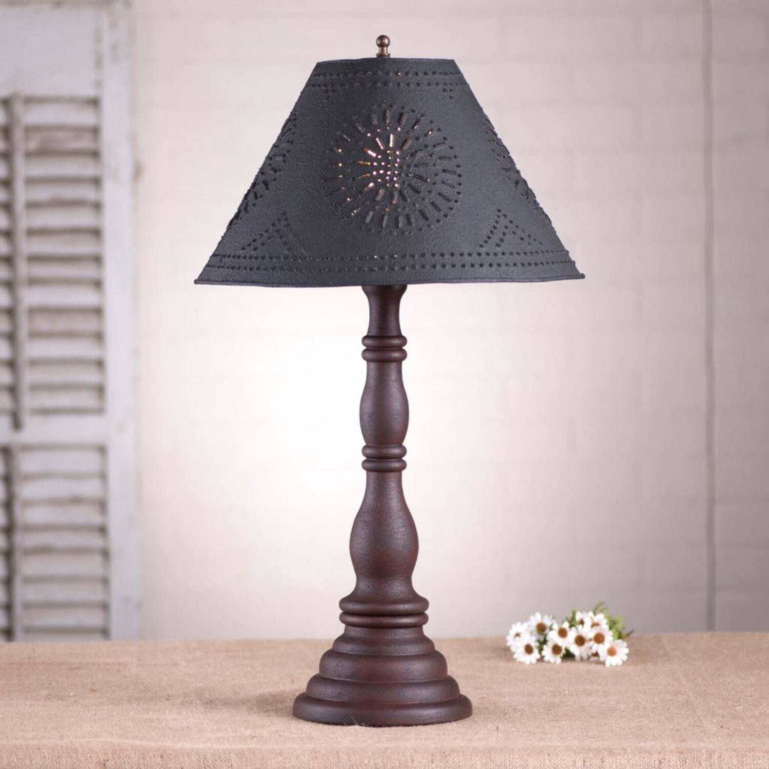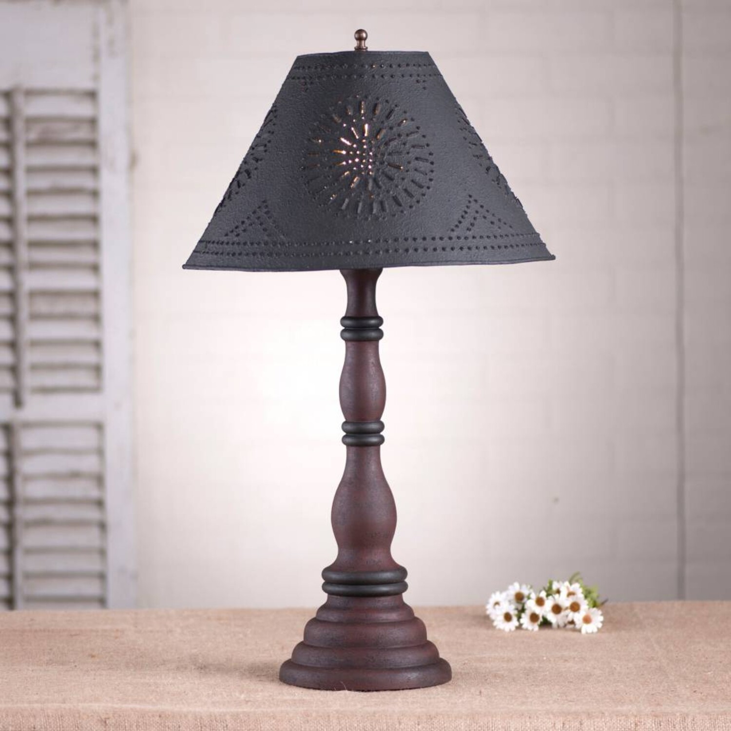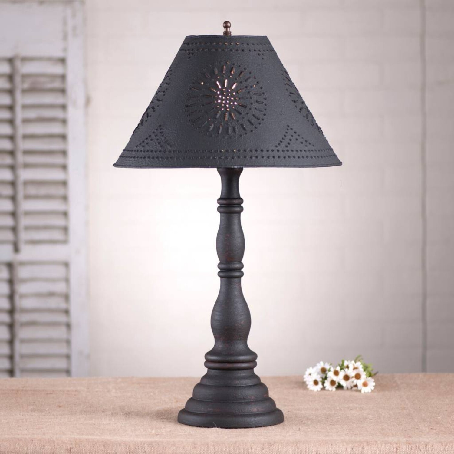 Availability: In Stock$299.95The Fireside Lamp is a stunning light! It's well balanced and sized for larger areas in your home. The punched tin base and shade will give you additional ambience in any room. Includes Willow Shade. Kettle Black finish. Made in the USA.Betsy Ross Lamp with Chisel Shade in Kettle Black