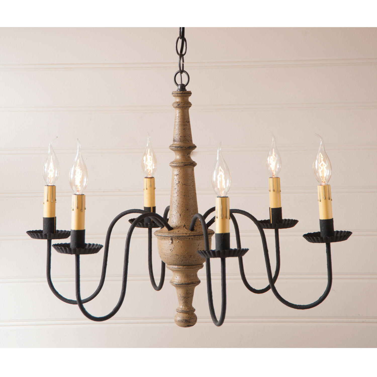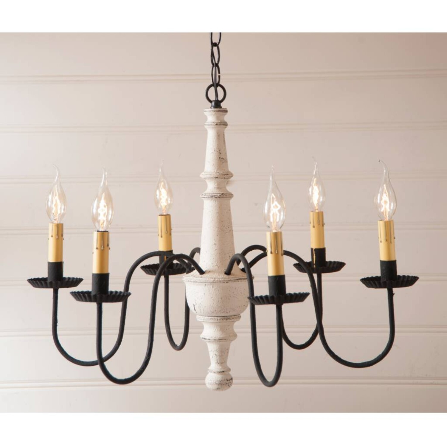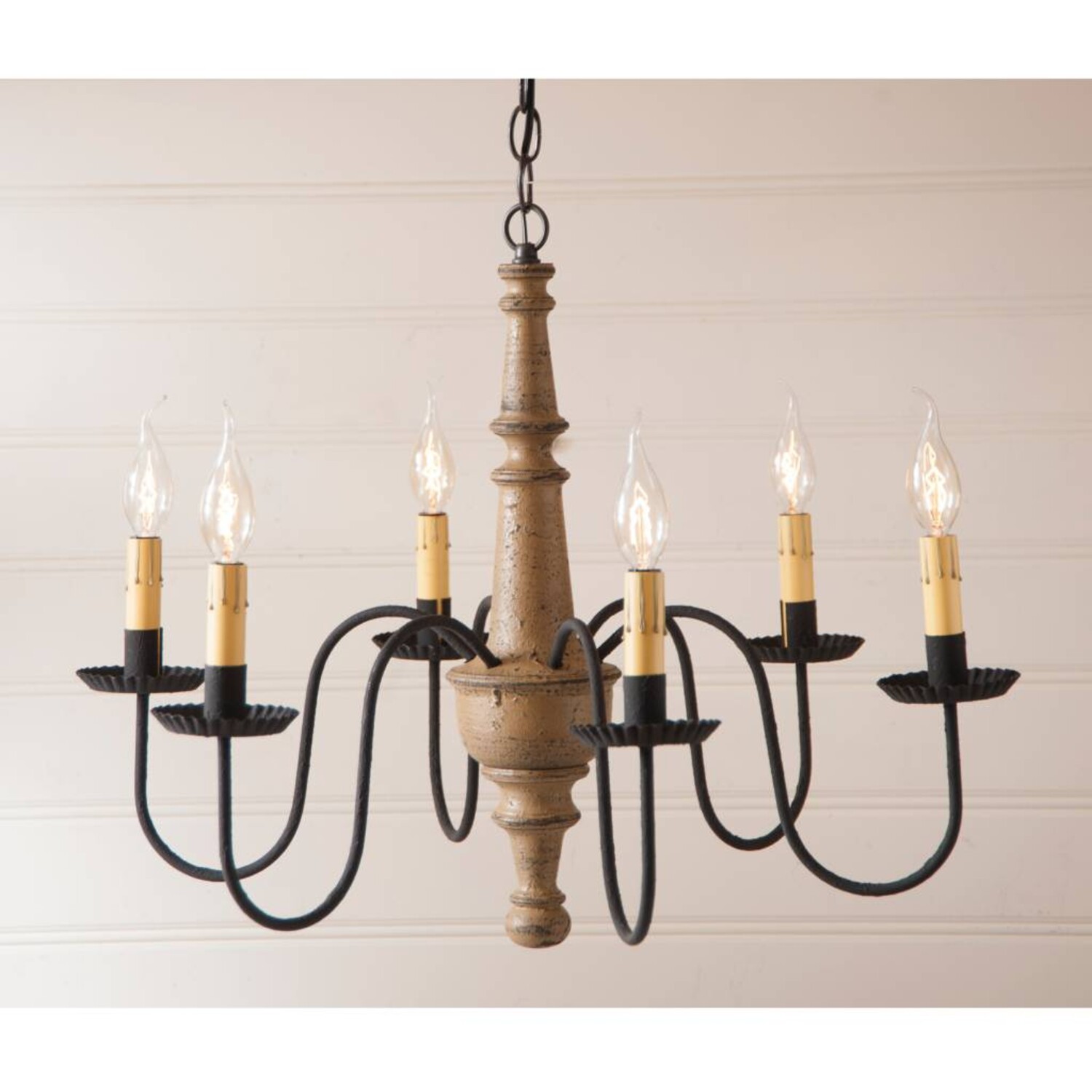 Direct wired with six candelabra sockets, 60 watts max. per arm. 7 feet of wire, 3 feet of chain, and a matching ceiling plate included. Additional chain may be ordered. Black textured arms with crimped pans. Handcrafted in Pennsylvania. This light is UL listed and has a 5 year guarantee.