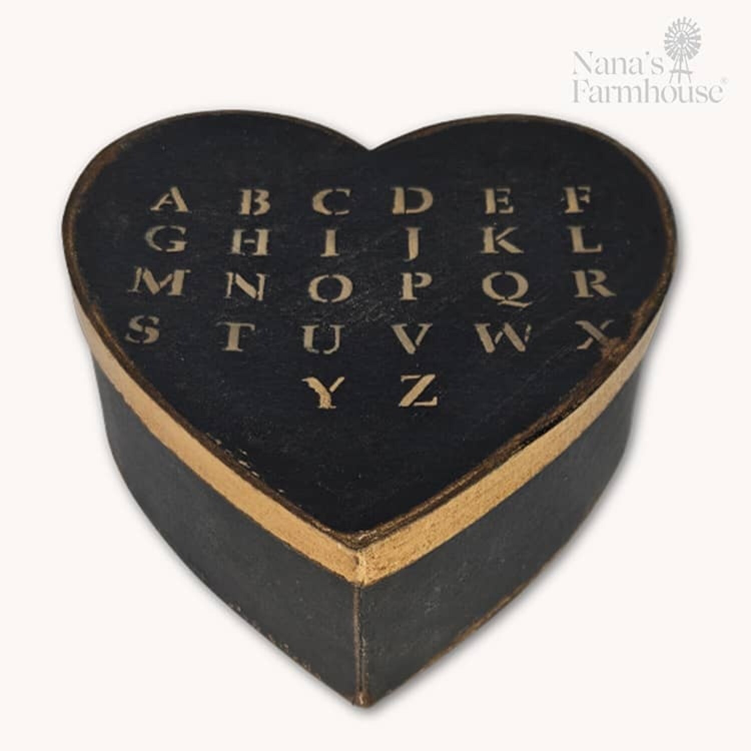 Heart Box with Lid Black Mustard Alphabet - 7.5" x 3"