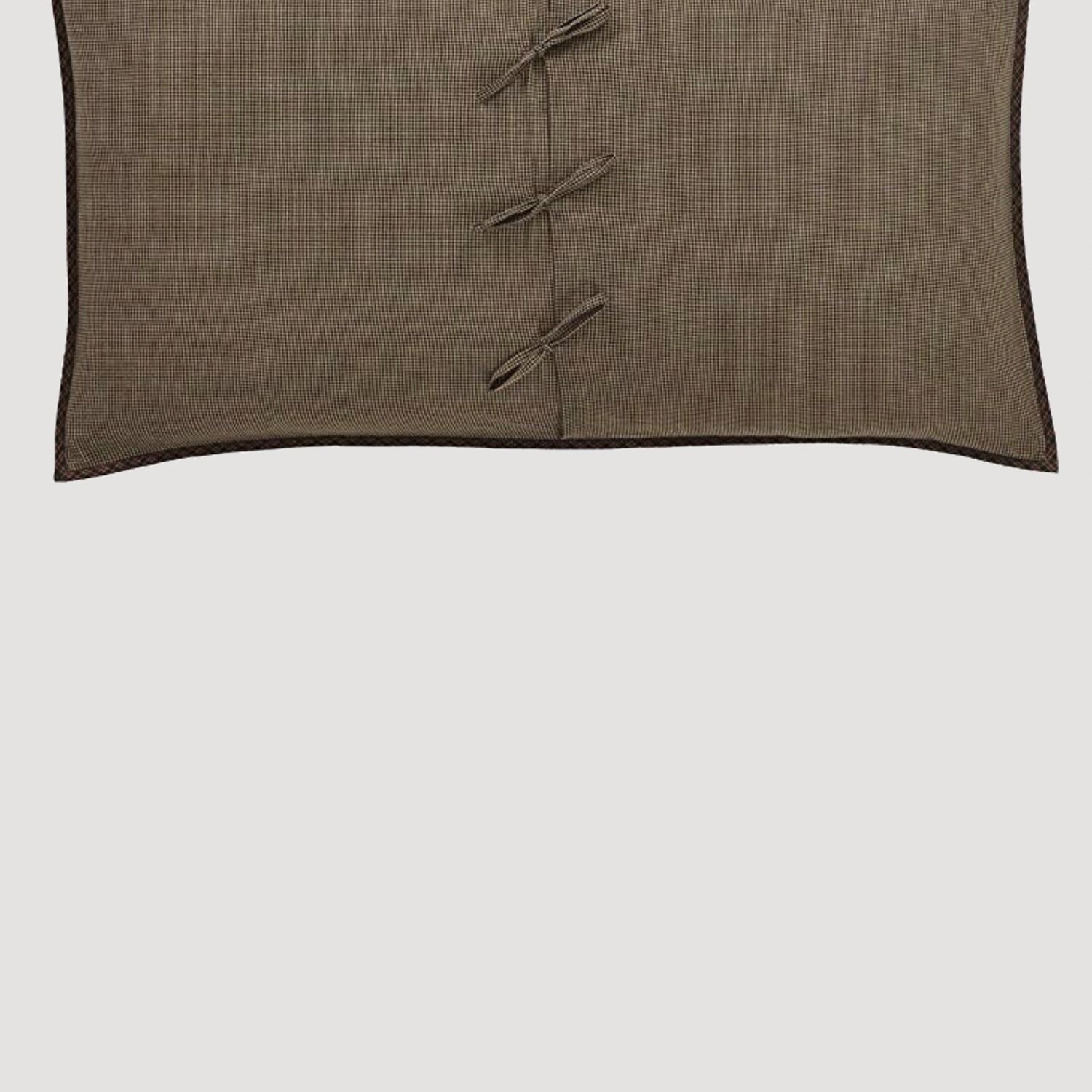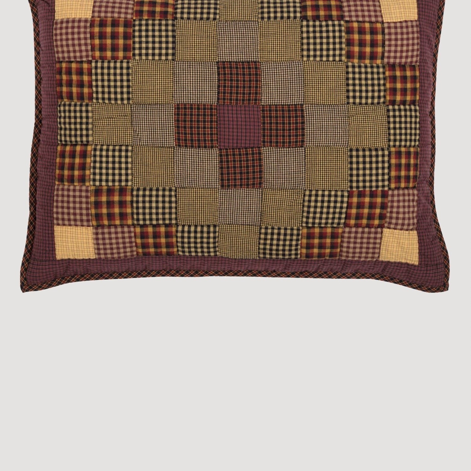 The rich colors of the Heritage Farms Sham is decorated with cascading blocks of crimsons, mustards, and black for a visually mesmerizing and enticing look. The cascading blocks are then beautifully framed by thick channel bordering.