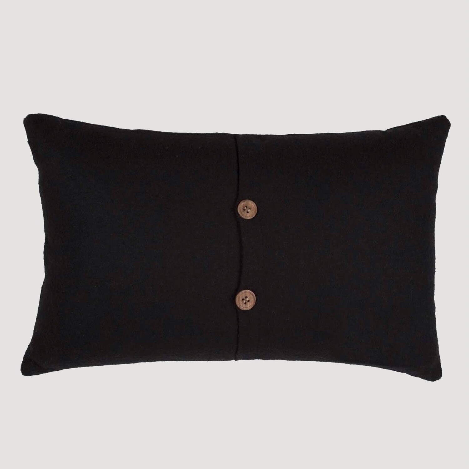Add the rich colors of the Primitive Blessings Pillow! This cozy pillow has embroidered Primitive Blessings in tan cross stitching on solid black felt. Appliqued primitive stars in various black, burgundy & mustard plaid with a dark wooden button.
