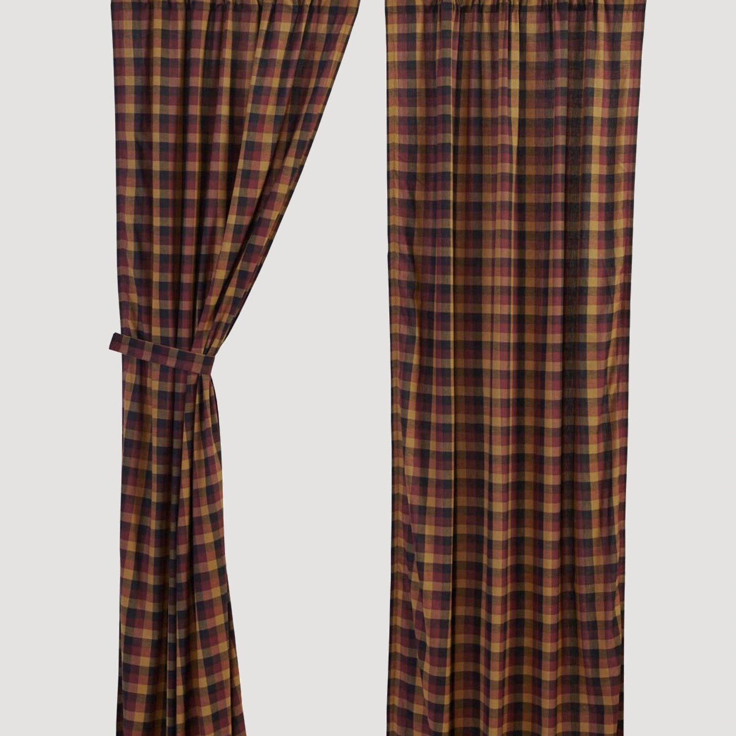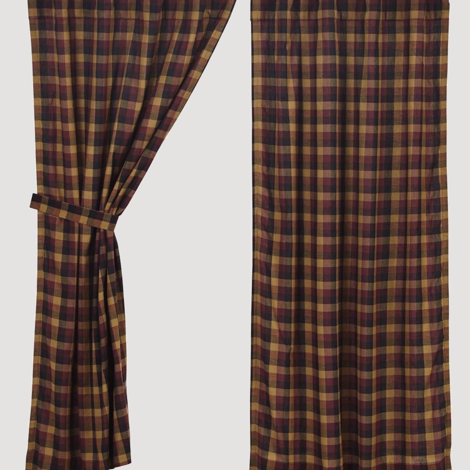 - Heritage Farms Primitive Check Prairie Short Panel SetAvailability: In Stock$34.95Refresh your windows with the romantic Primitive Check Prairie Curtain Set. You'll love the rustic look with it's large scale burgundy, mustard, and black check fabric all cotton. The set is lined in all white cotton and includes drawstring ties.