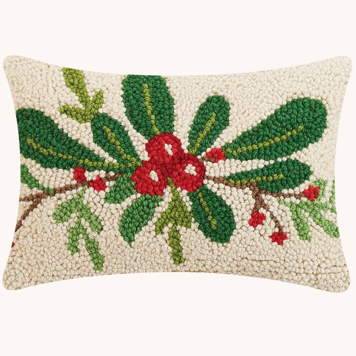 Features of the Holiday Foliage Berrys & Leaves Hooked Pillow: