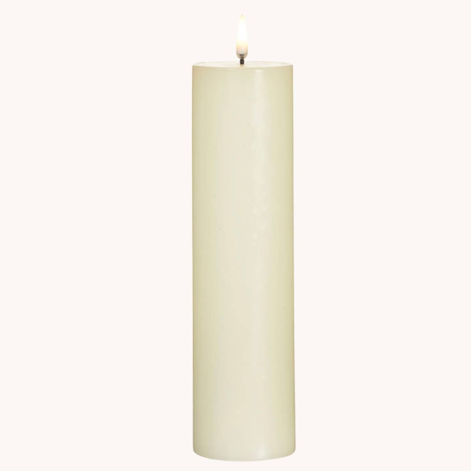 Beautiful Ivory Pillar Candle that looks realistic. The safety of being battery-operated and the realism of a traditional candle. 6 hour timer last 18 hours. Remote ready. Remote #4034520 sold separately below.