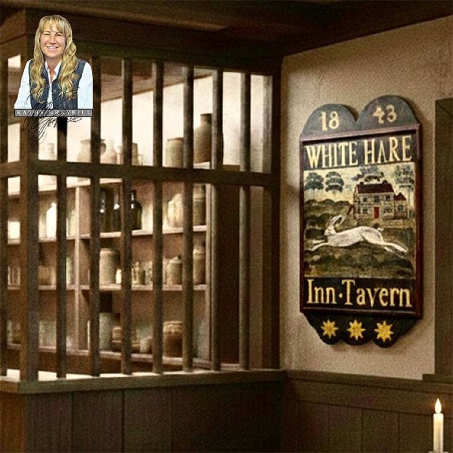 Kathy Graybill Hand Painted White Hare Inn Original Artwork Tavern Sign - 33" x 18.5"