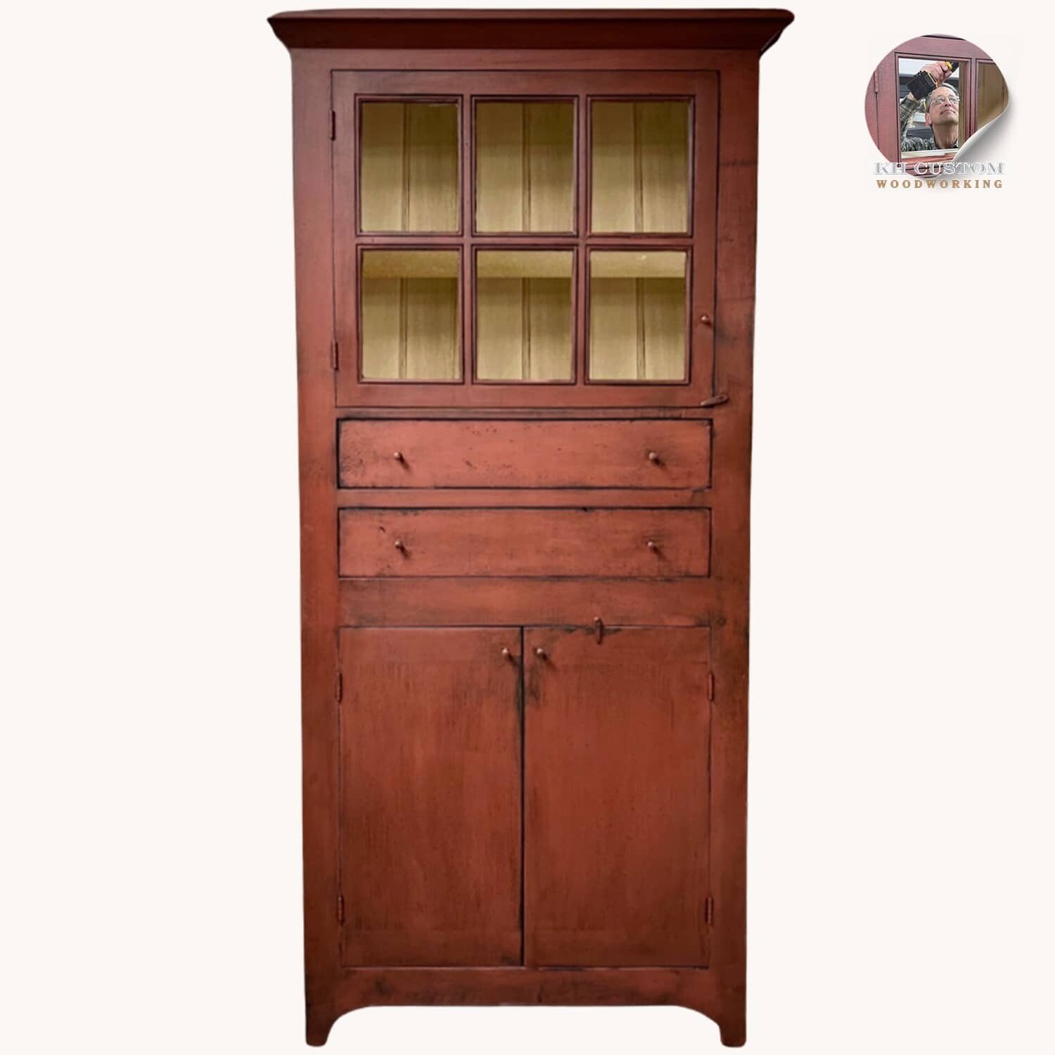 This heirloom cabinet is known as the Kenny Cupboard. Made of reclaimed wood and glass from 100 yr. old homes on the East Coast. Great craftsmanship and unique designs. In-stock