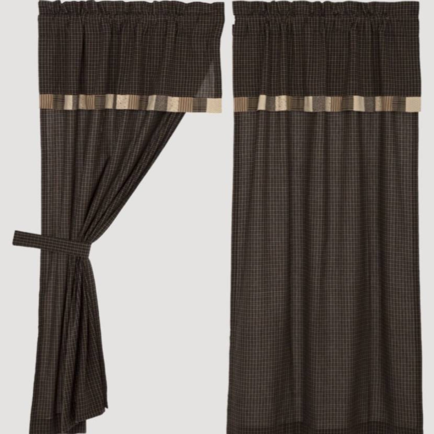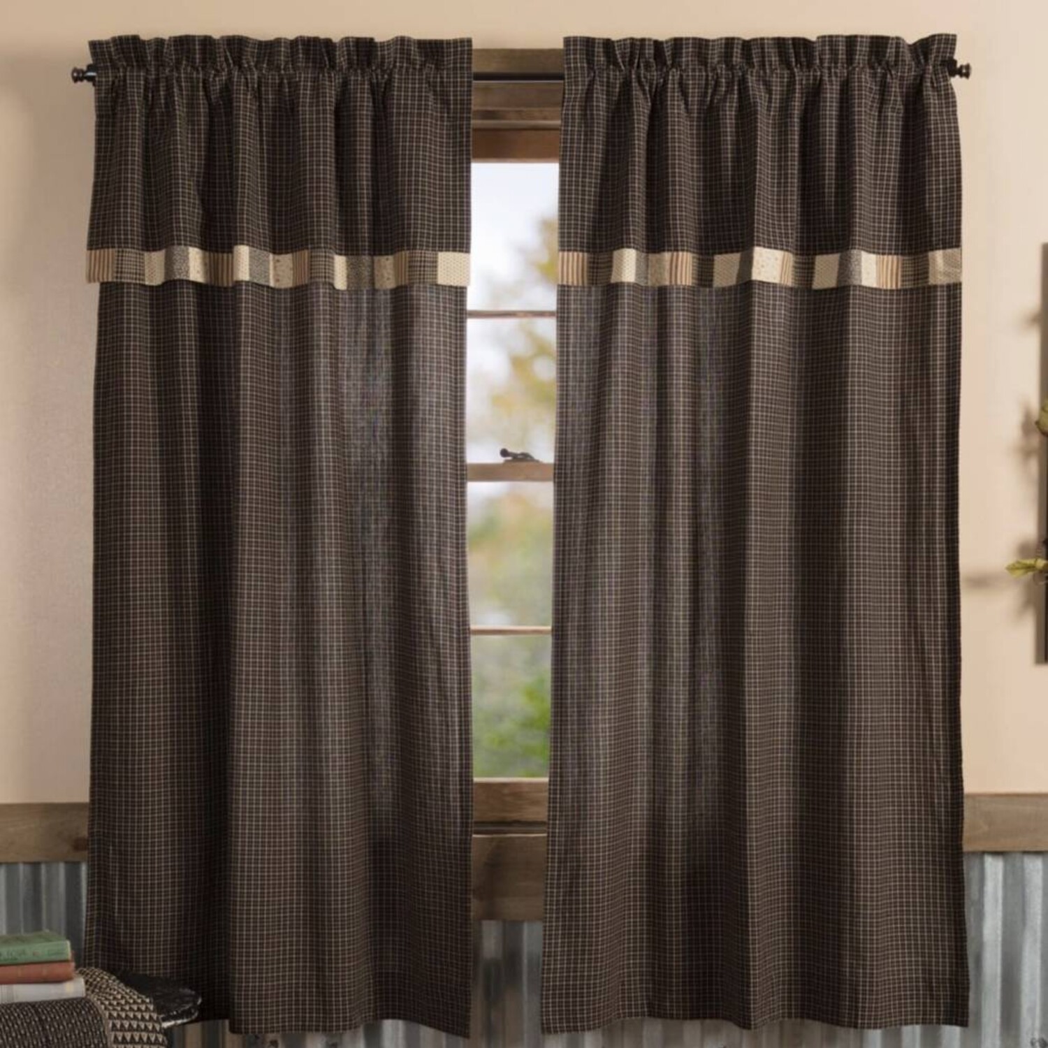 Availability: In Stock$27.95The romantic scalloped edge of the Kettle Grove Plaid Prairie Swag brings a finishing touch to your Farmhouse home.. The rich colors of black & beige in a micro check design. Panels are lined & sold as a set. Measures 36" x 36" x 18".- $67.95
