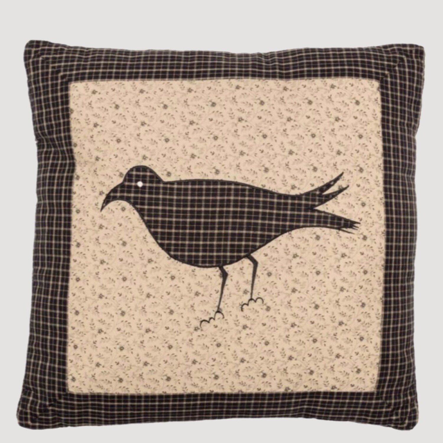 The Kettle Grove Crow Pillow makes a classic statement on any bed or chair. Available in two sizes, 16" x 16" or 10" x 10". Made of 100% cotton. This pillow is machine washable. Sold Filled.