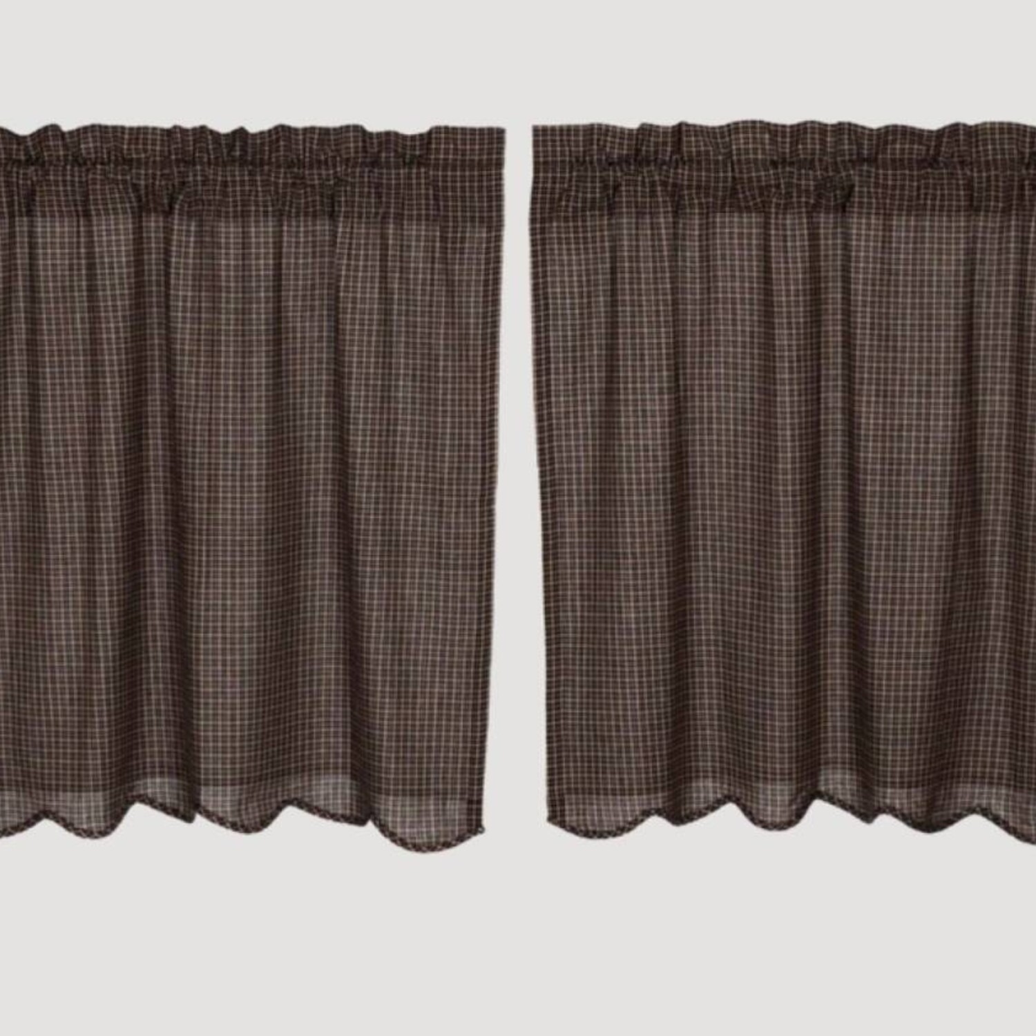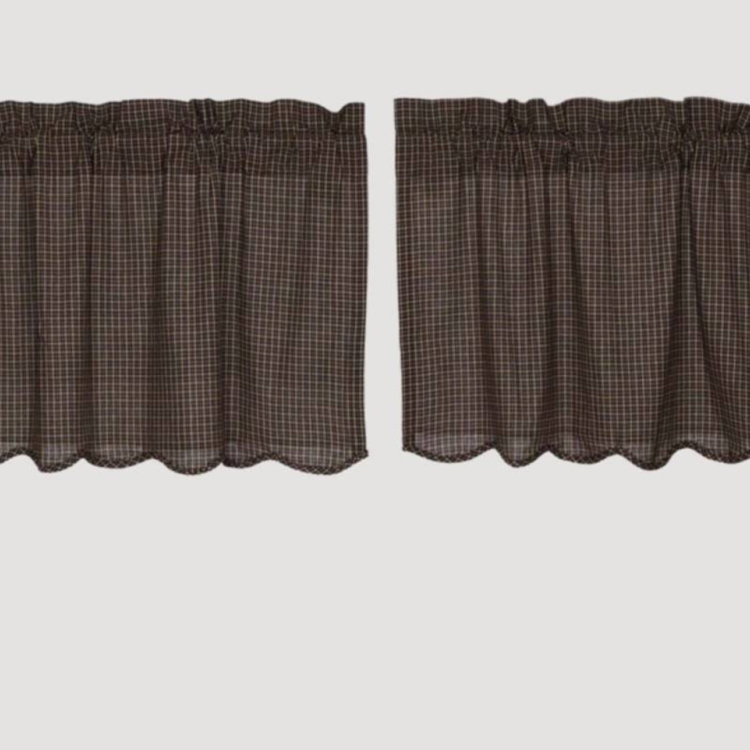 Bring a timeless look to your home with the Kettle Grove Plaid Scalloped Tiers. The tier is made of 100% cotton, lined. Set of 2 is available in 24"H x 36"W or 36" High x 36" Wide. Header and 3.25" Rod Pocket