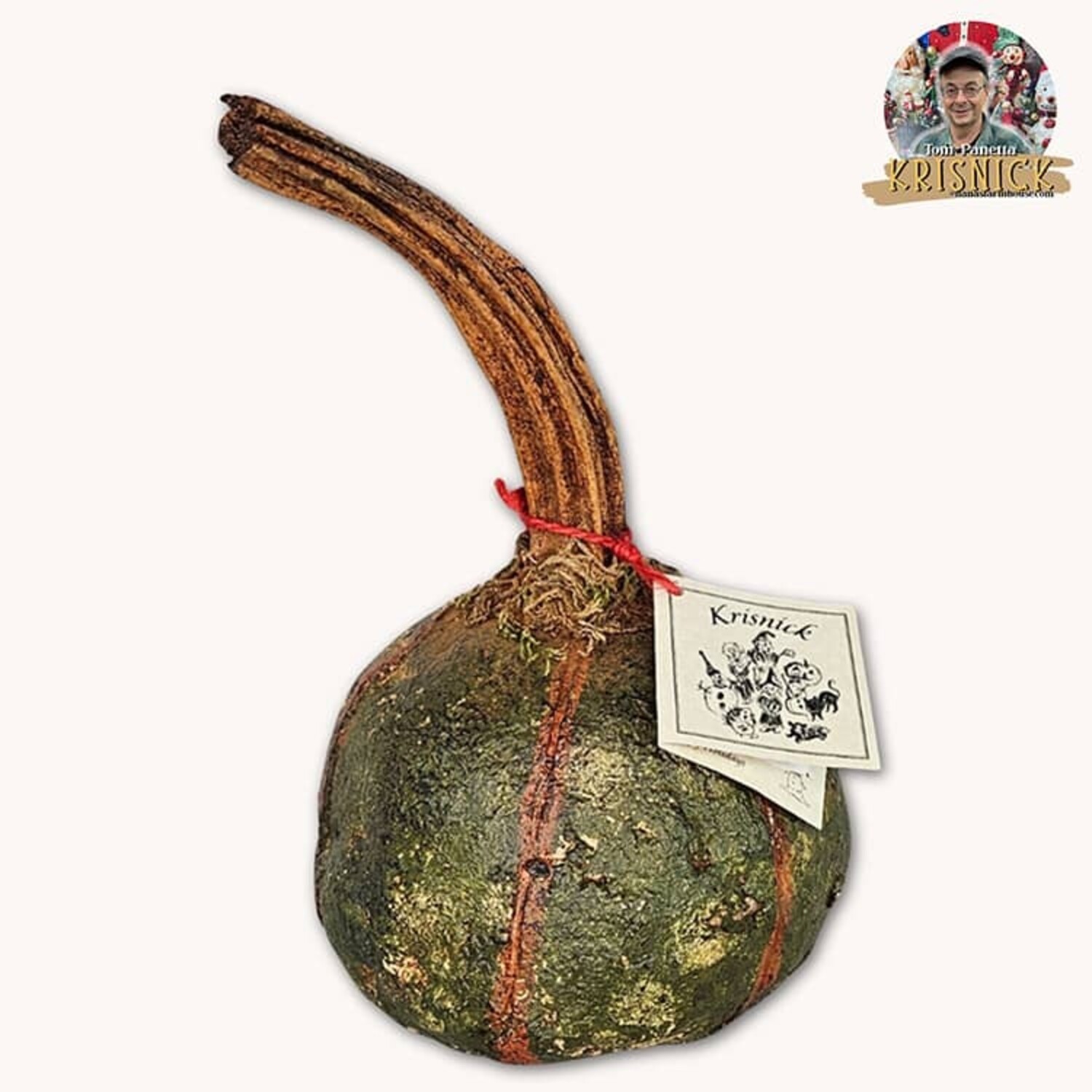One-of-a-kind handmade Green Pumpkin with long dried stem. From the wonderment that is Krisnick. Handmade in the USA.