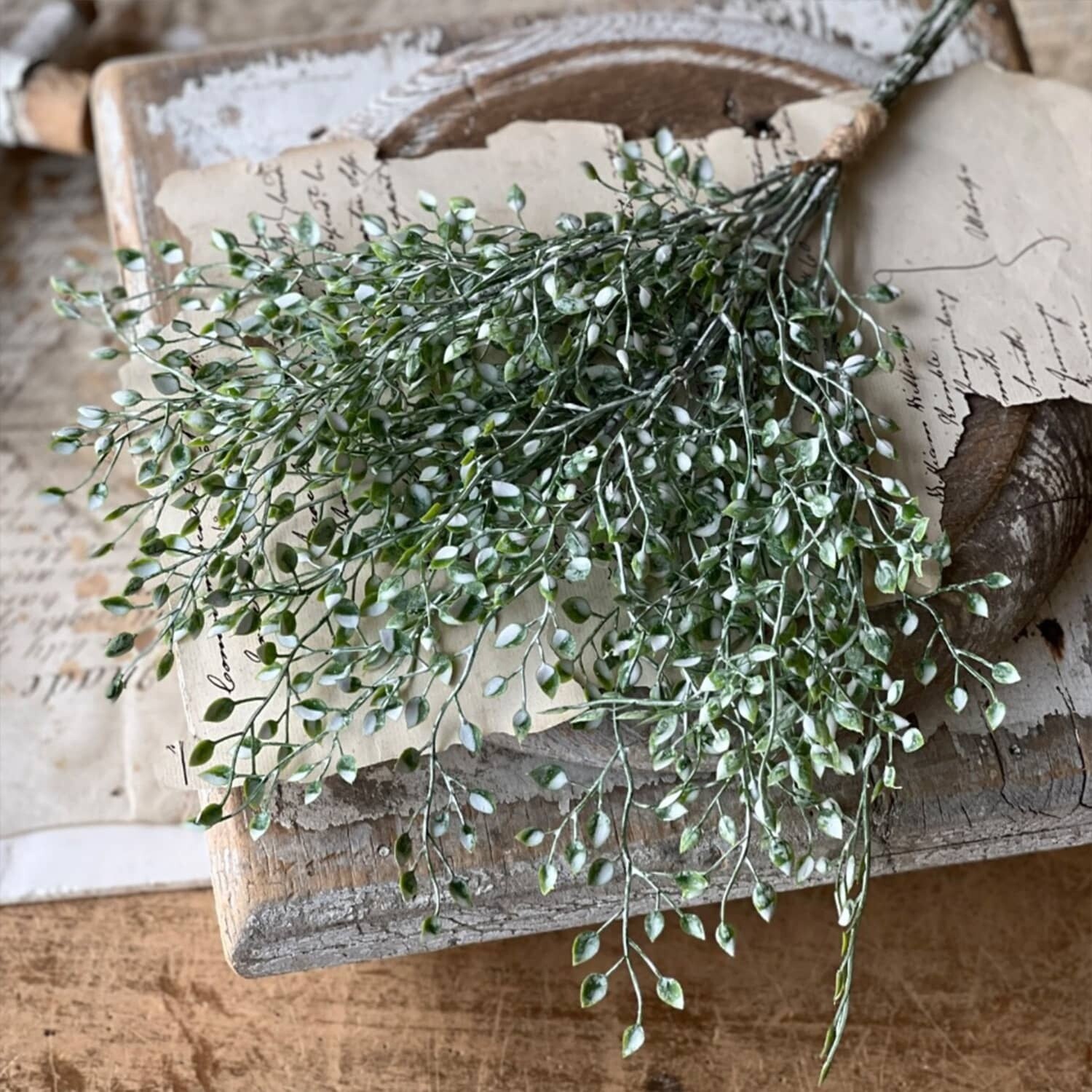 The Little Luna Bundle brings you an abundance of small dappled leaves.  A touch of Spring brought indoors!  Full look with seven stems brought together with twine.  So realistic!  Made of plastic, plastic stem.