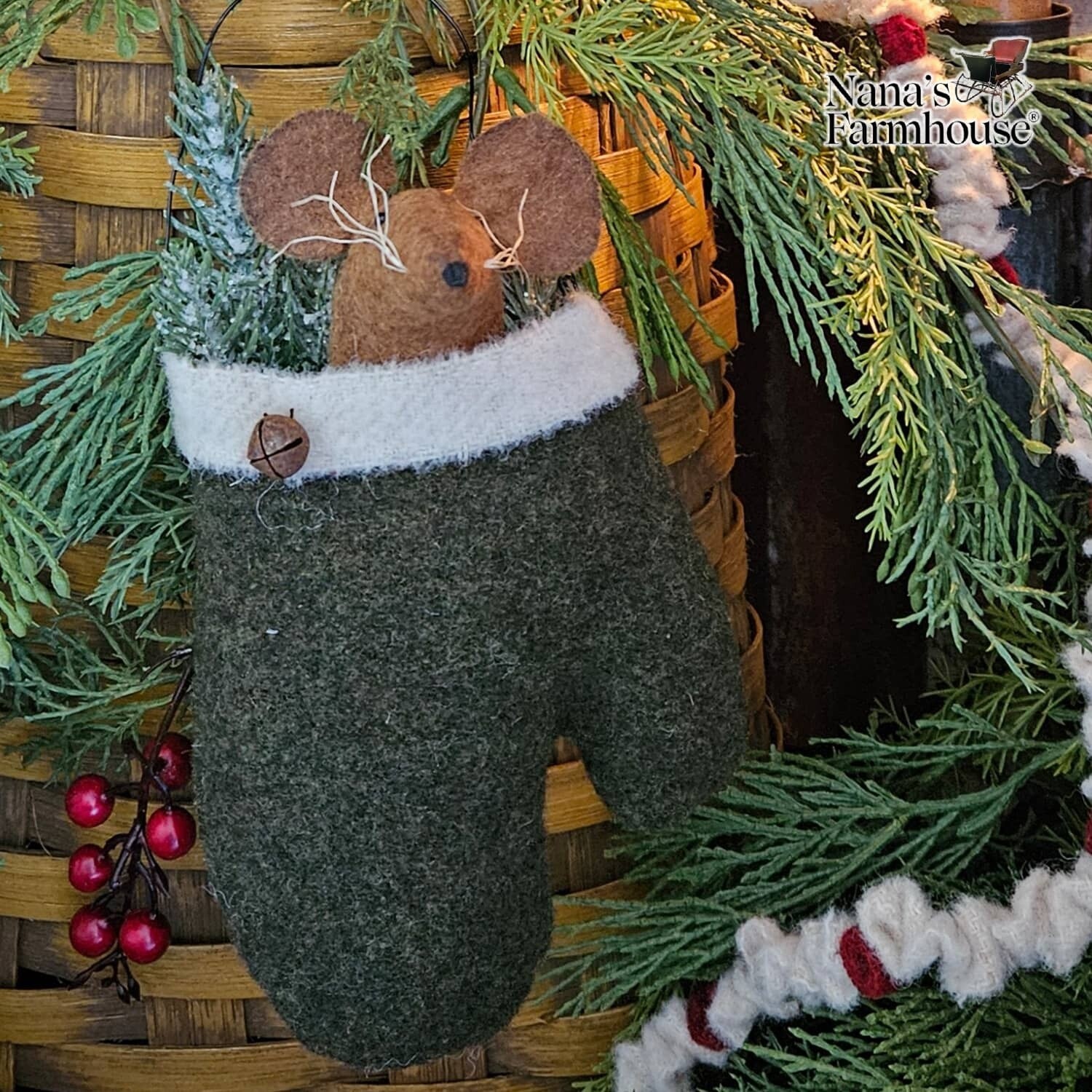 Mouse In Mitten with Wire Hanger Ornament Green - 8"