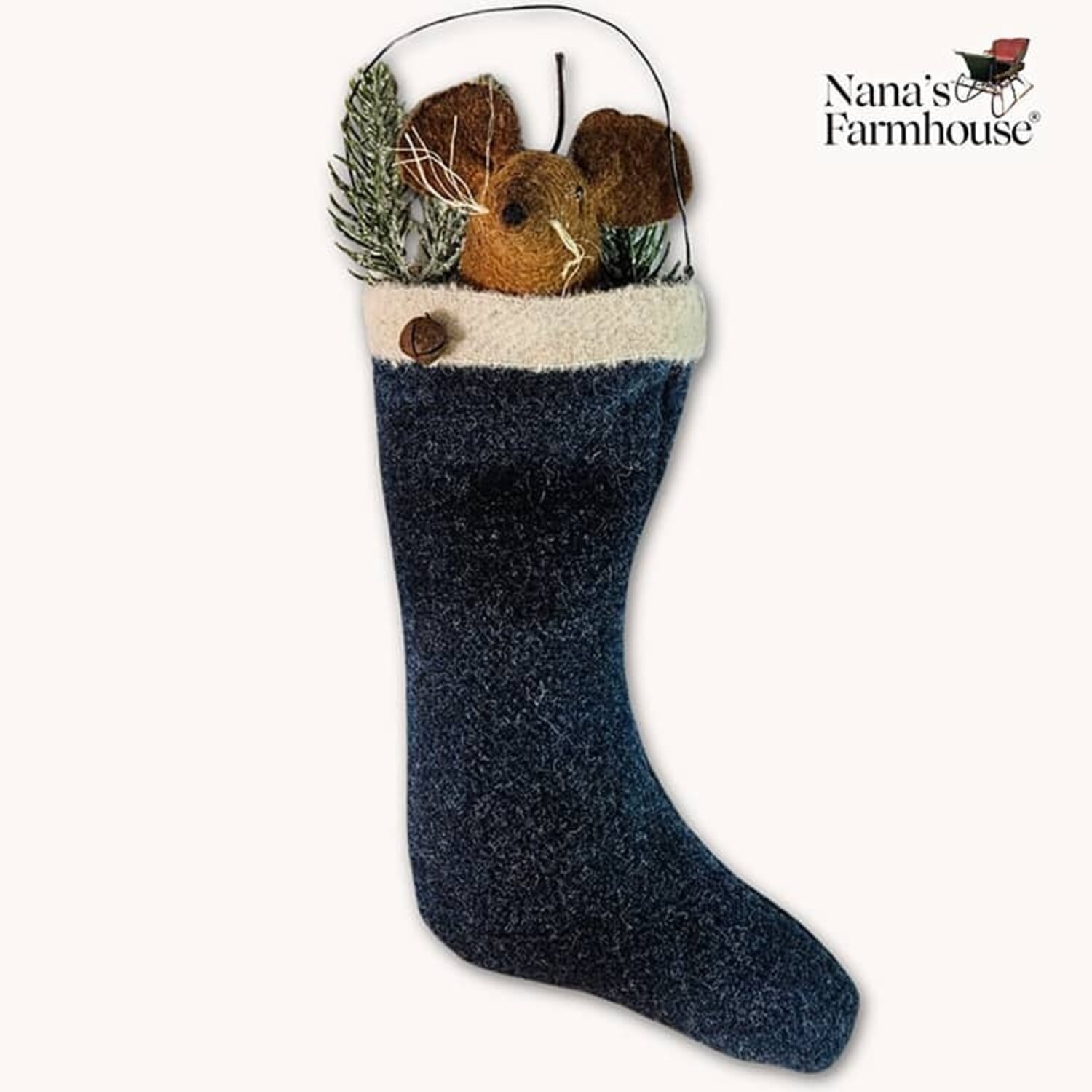 Features of the Mouse In Stocking Ornament Blue Plaid: