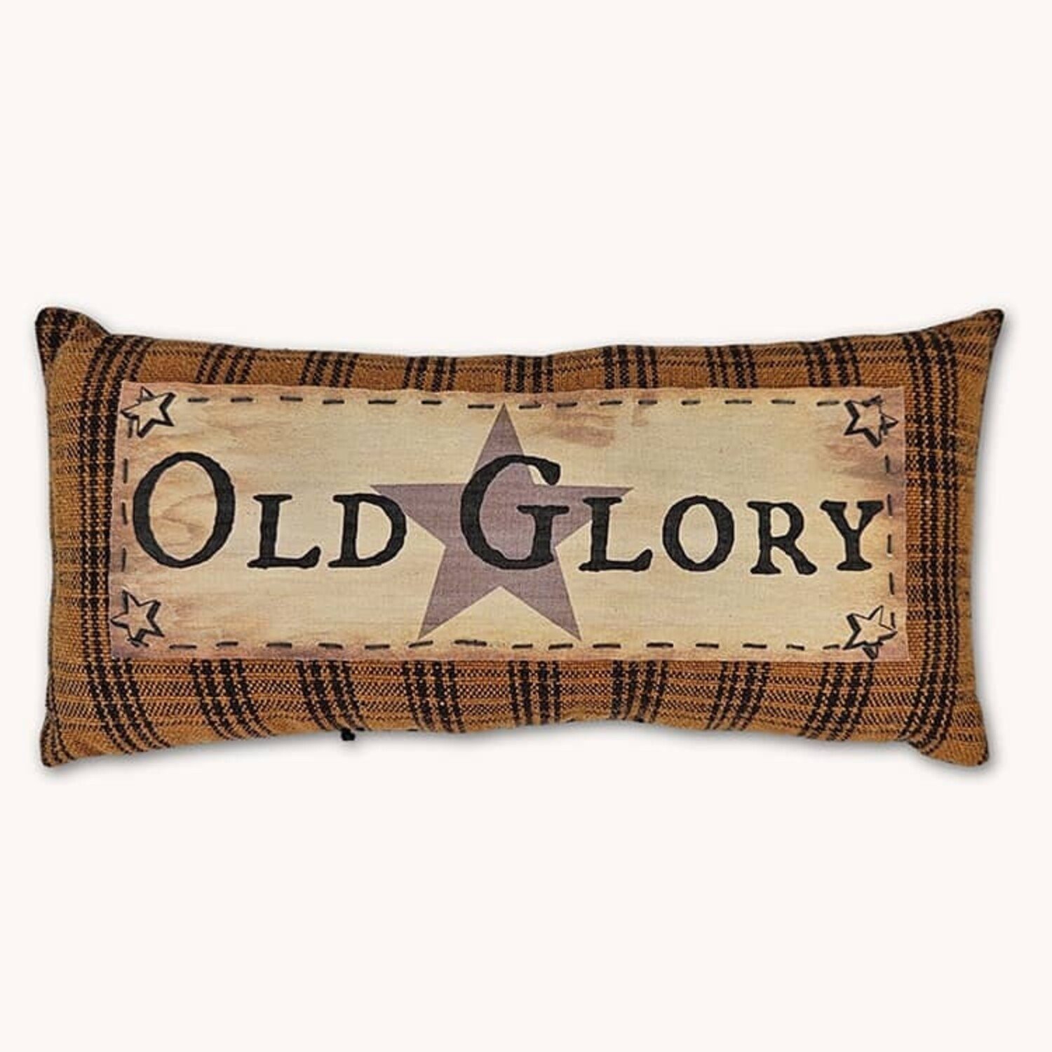 This Old Glory Applique pillow design brings a warm patriotic touch to your home. Handmade in the USA and makes a great addition to your collection or as a gift. In-stock and ready to ship.