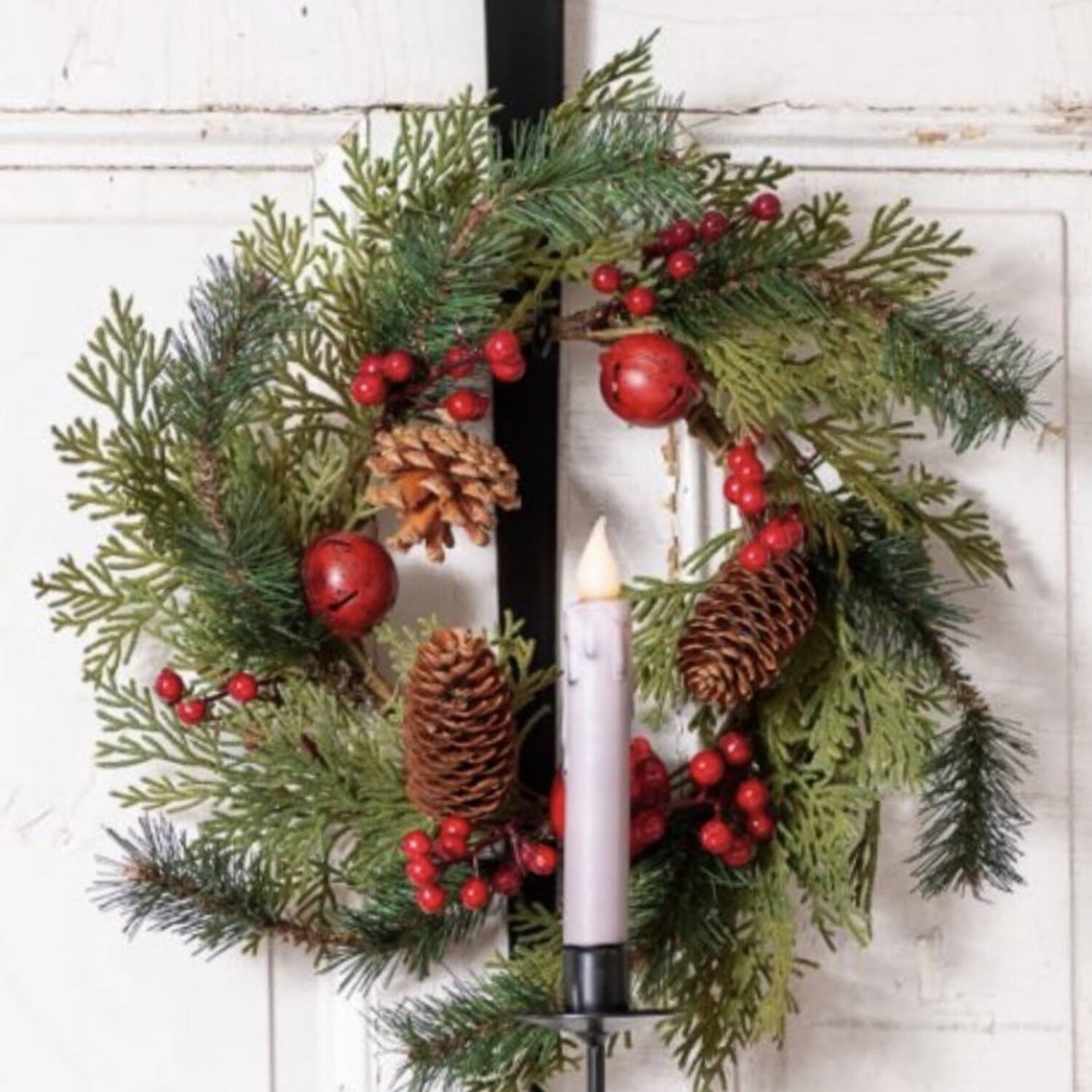 We make it easy to hang your wreath with the Over the Door Wreath and Candle Holder. Great for any internal or external door at your home. In-stock and ready to ship. Wreath nor candle included.
