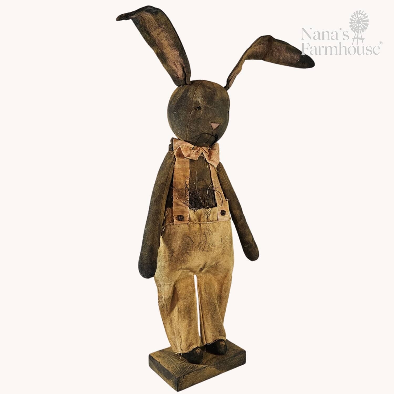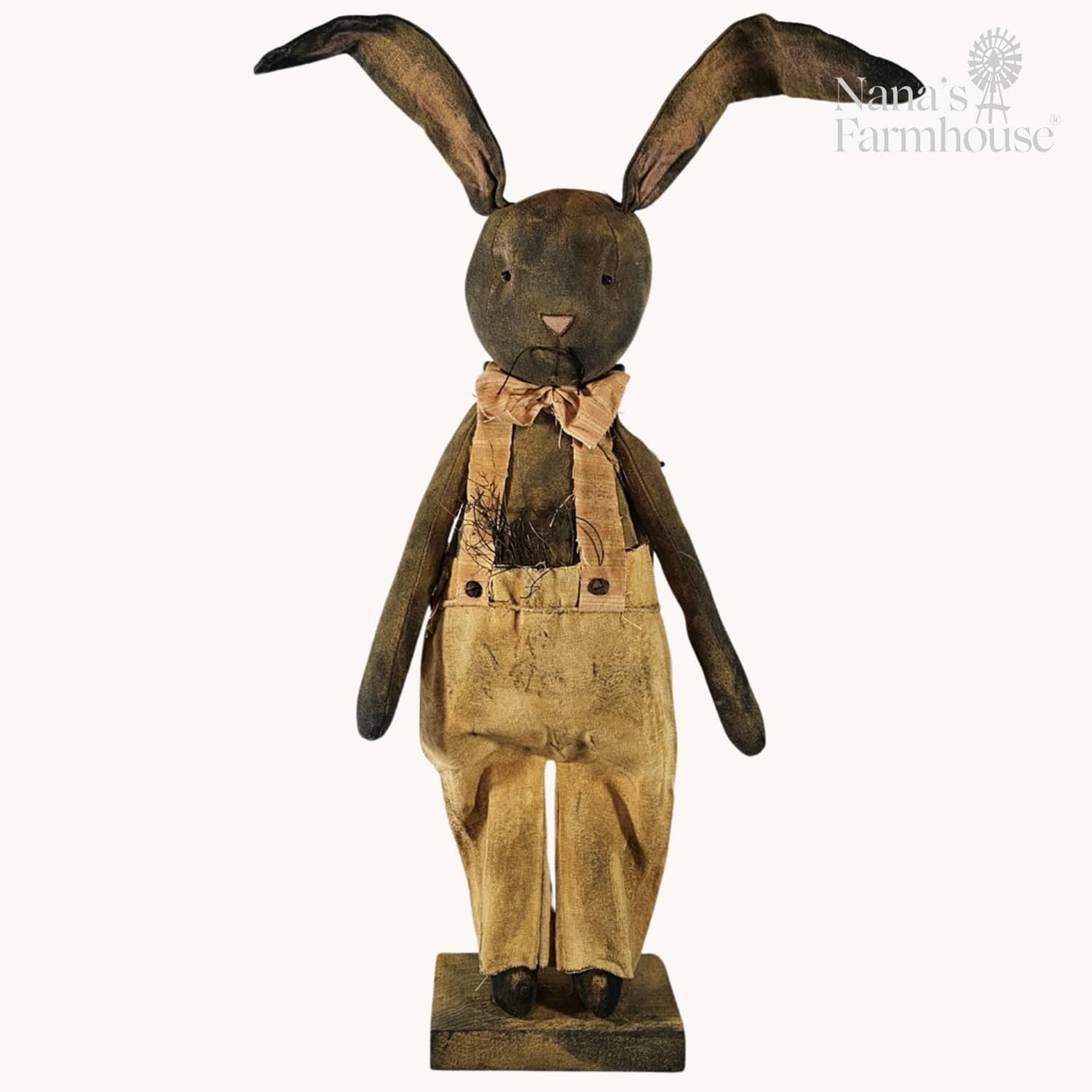 Peter Boy Bunny Doll Dark Brown Orange Overalls with Baby Peep In Bag - 24"{