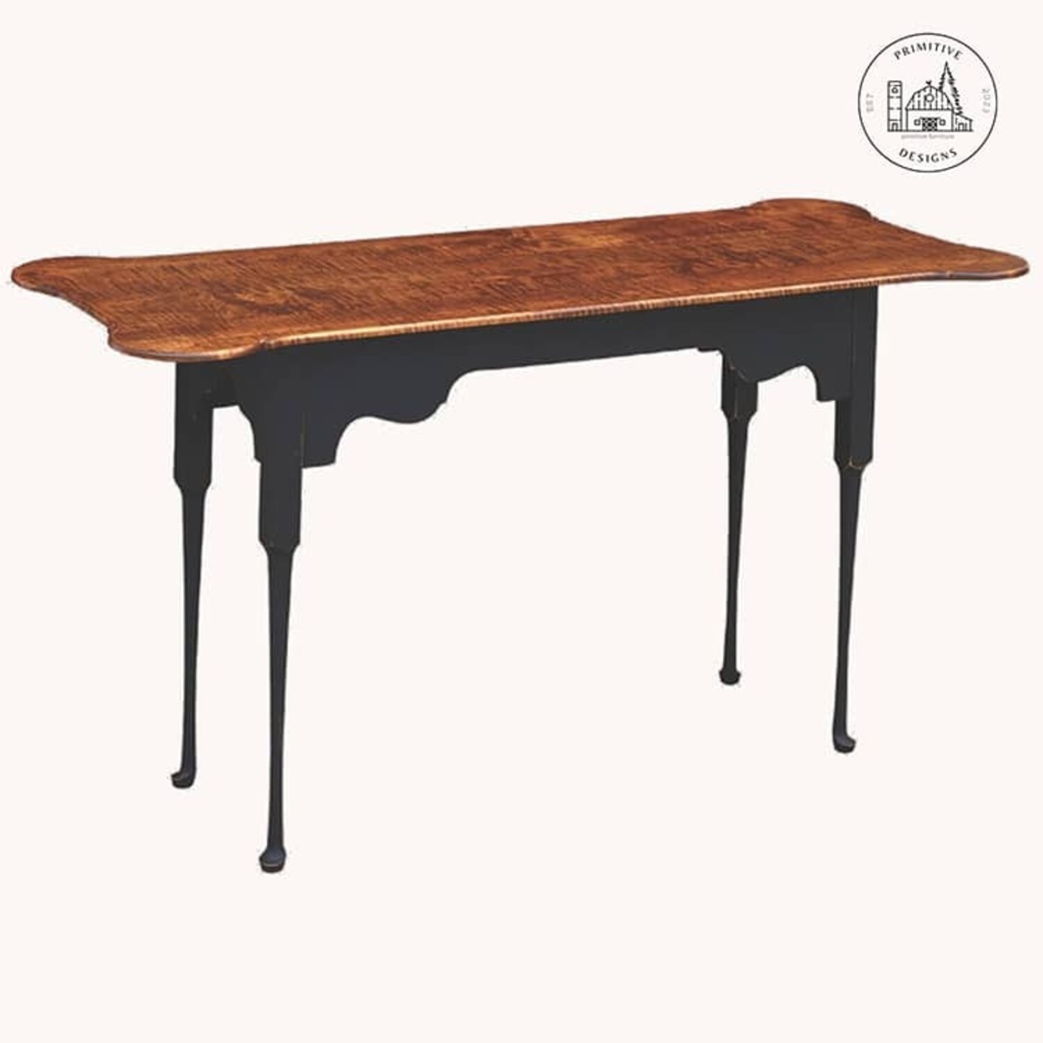Porringer Sofa Table with Tiger Maple Top & Black Rubbed Legs