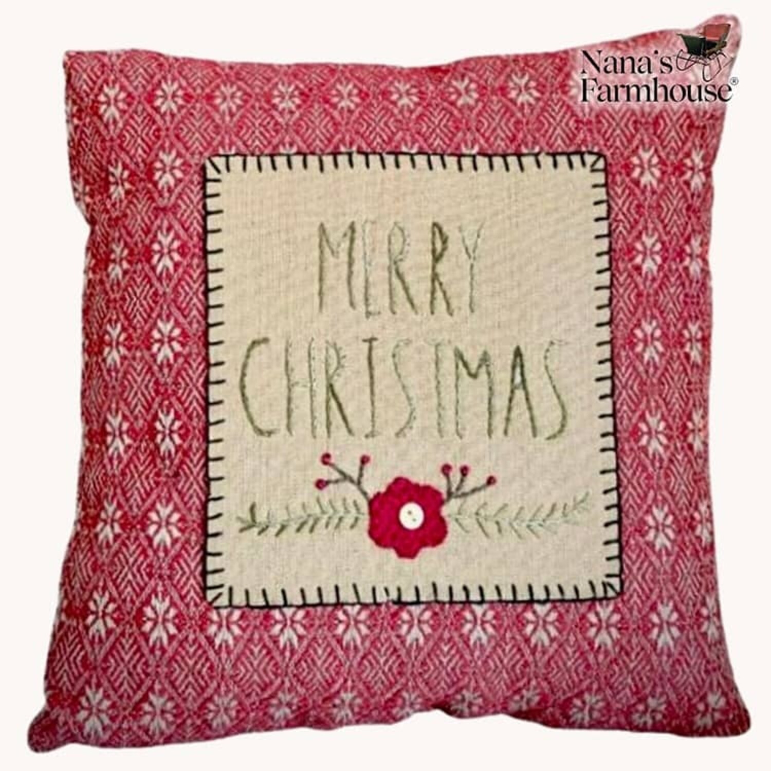 Features of the Red Coverlet Merry Christmas Wool Applique Pillow: