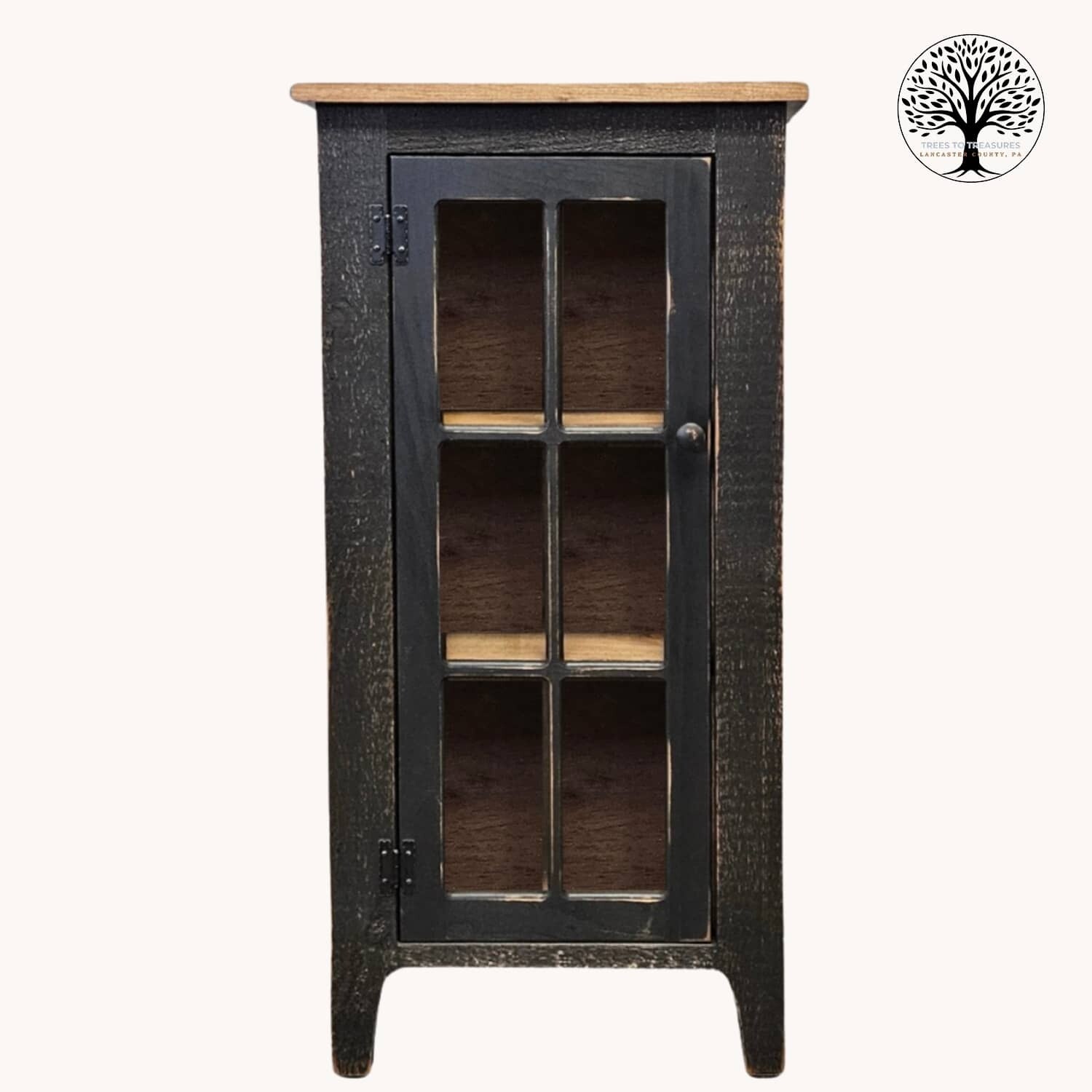 Rough Sawn One 6 Pane Glass Door Cabinet Barnwood Top Black - 44" x 22" x 12.5"
