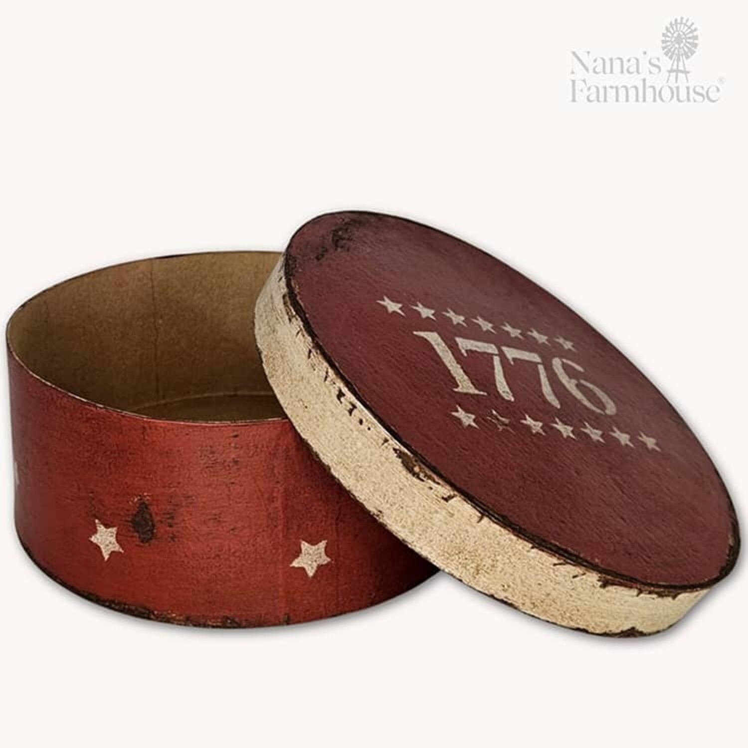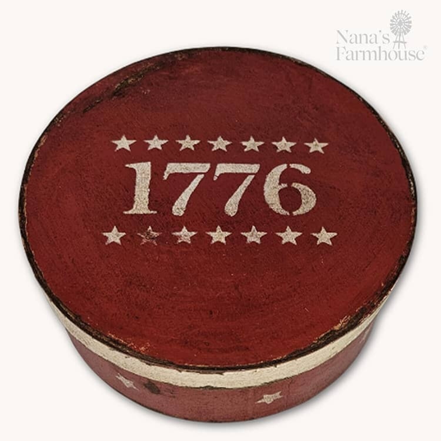 Round Box with Lid 1776 Stars Red - 7.5" x 3"