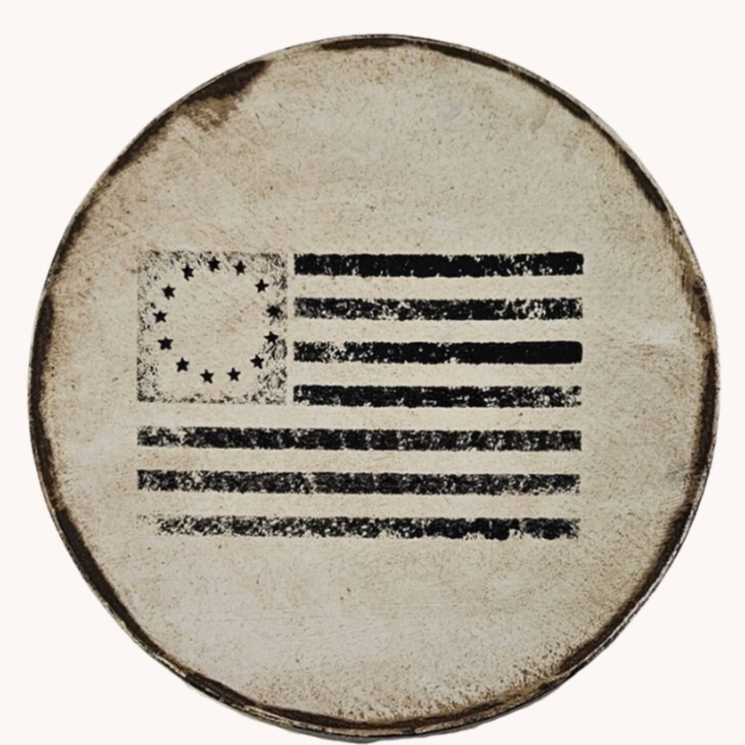 Round Box White and Black Primitive Flag - 10" Dia x 3" T