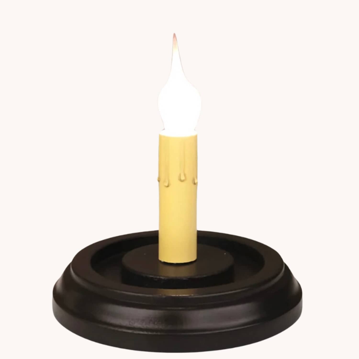 You'll love this Black Round Candle Sleeve Base. Accented with a flame-tipped bulb & realistic candle drips, and designed & made just for the 6" candle sleeves we sell seperately on this site. One 6" bulb included.